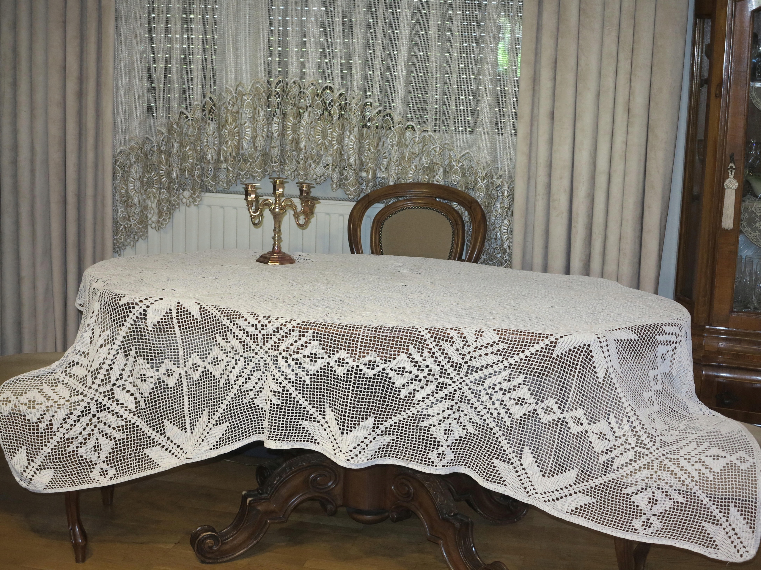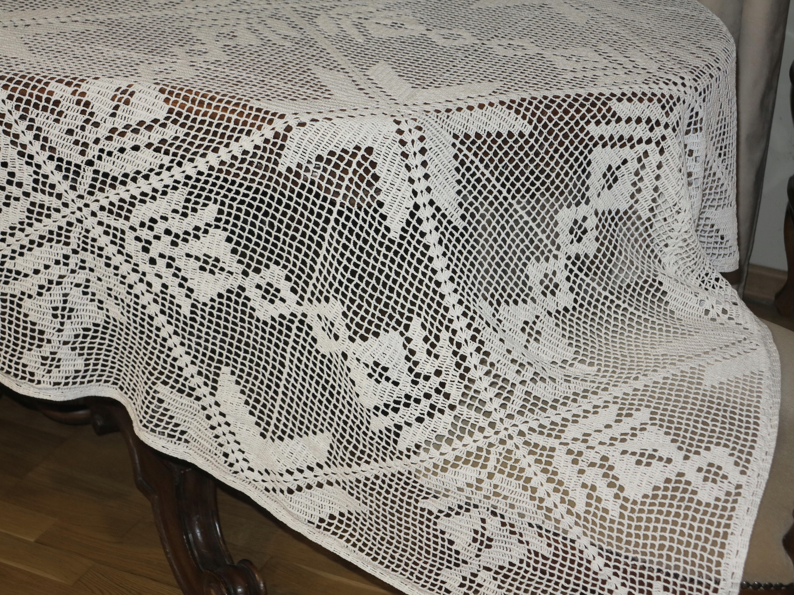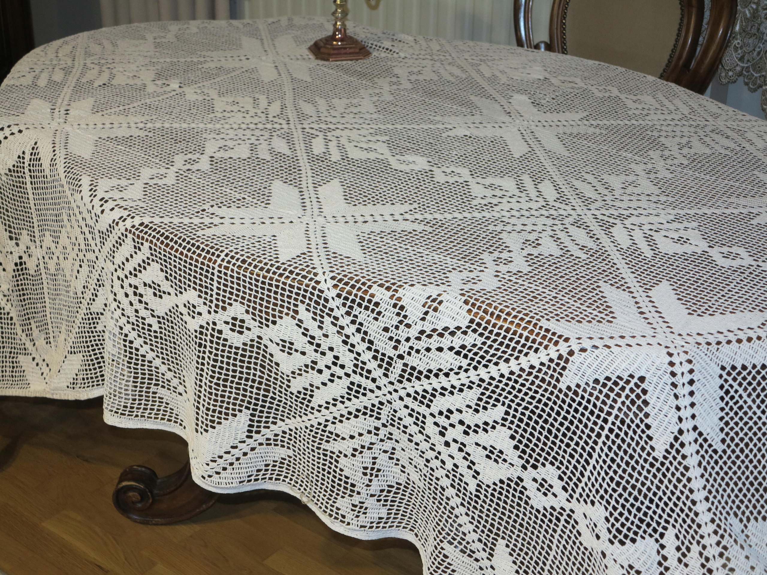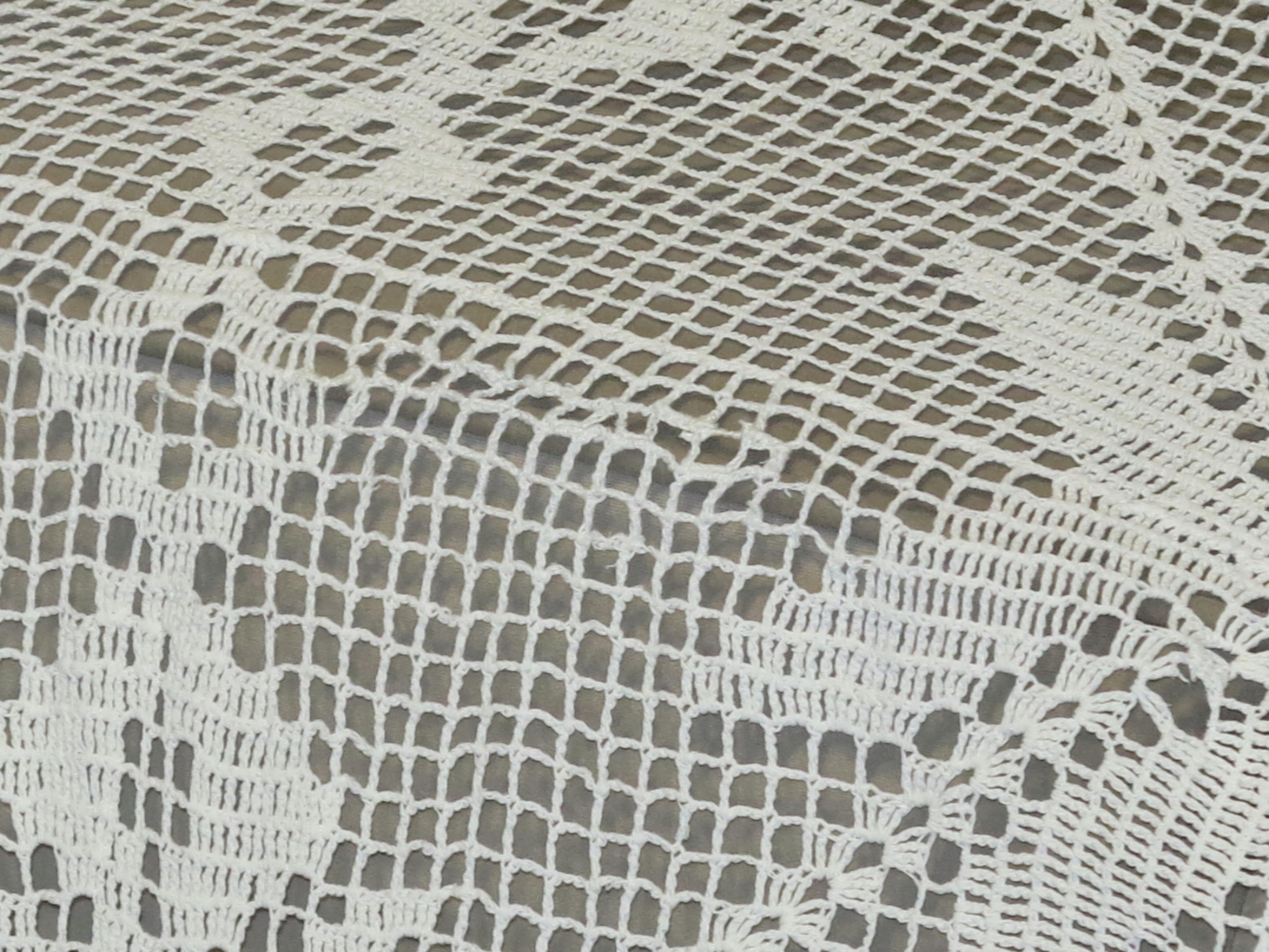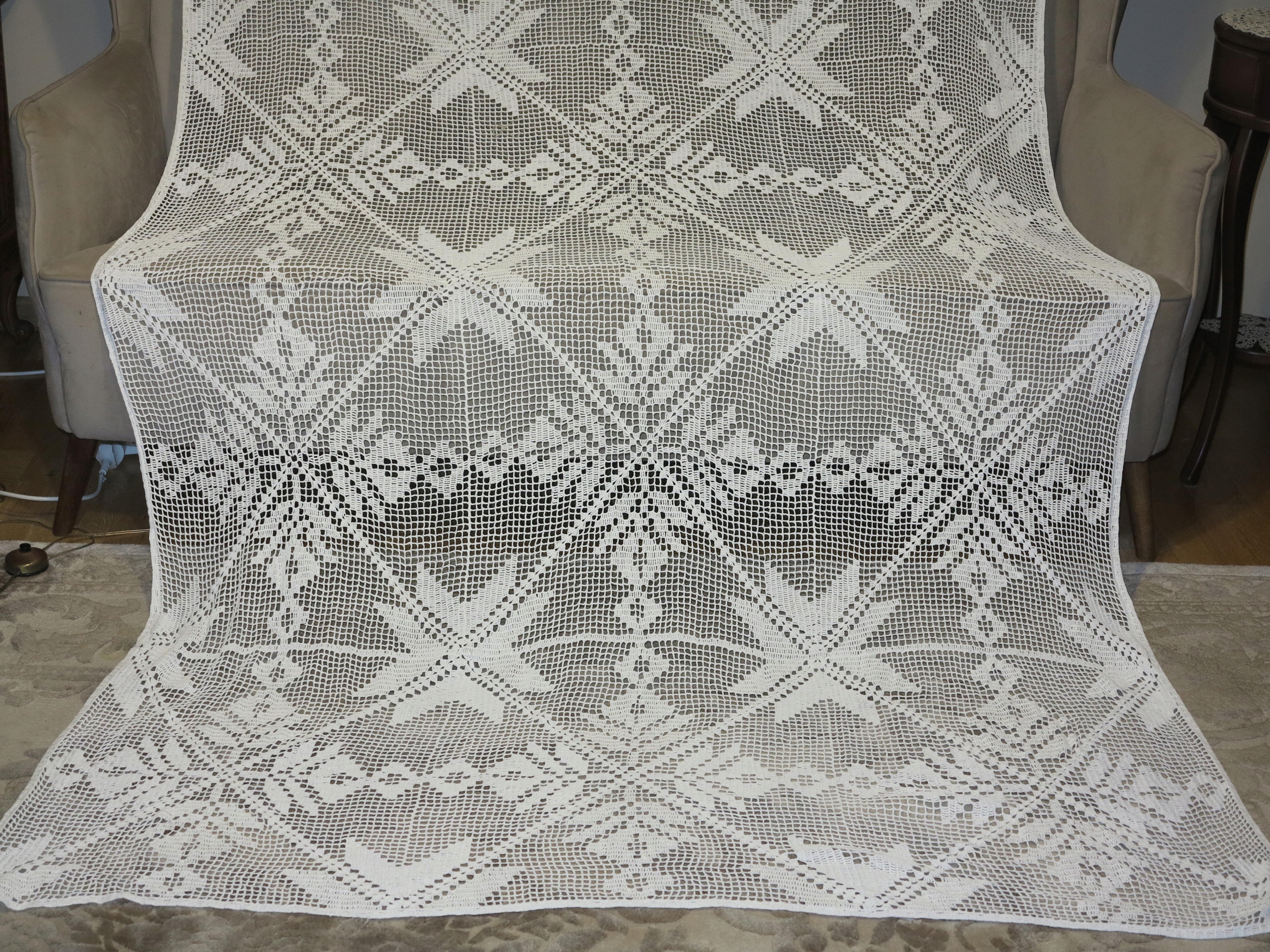 Предмет аукциона - красивая хлопчатобумажная скатерть или покрывало крючком, полностью ручной работы. Его размеры: 228 см, ширина: 157 см. Скатерть б/у, в очень хорошем состоянии и качестве. Рекомендую, прекрасное украшение для стильного интерьера.