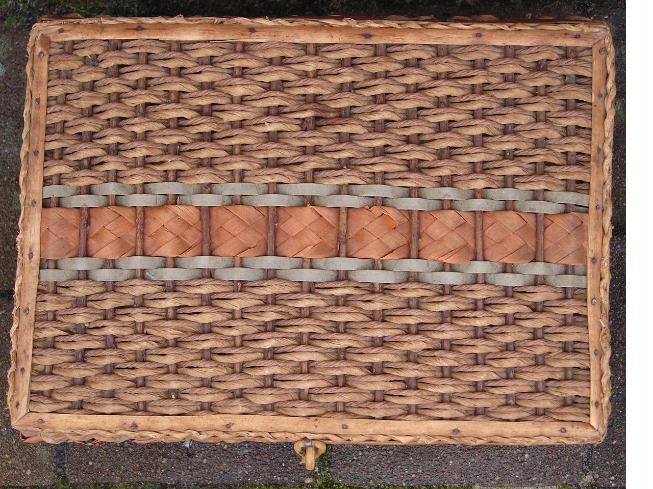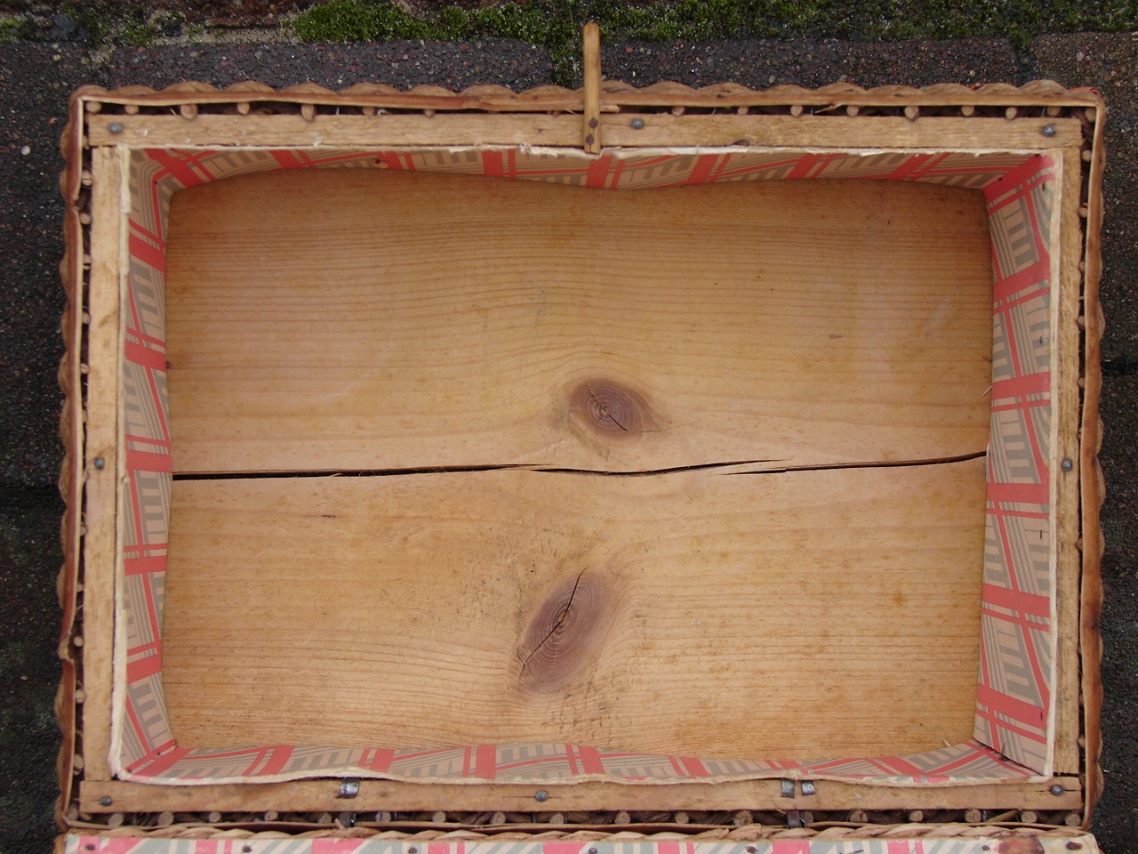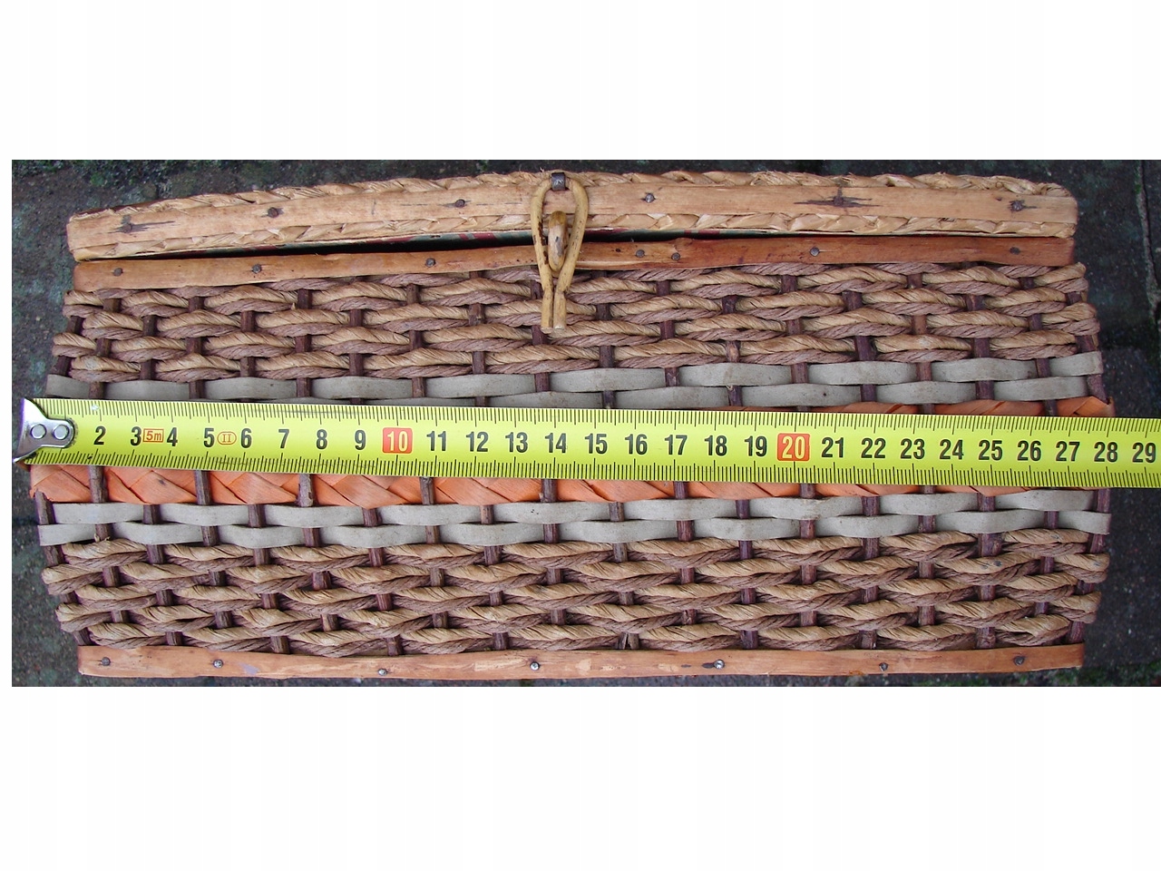 Шкатулка полностью изготовлена из деревянных плетеных ветвей. Внутренняя оболочка из картонных бумажных металлических петли.
