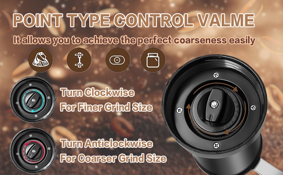 Регулируемые уровни шлифования: точная керамическая шлифовальная головка предлагает 5 регулируемых уровней шлифования, от малого до среднего и грубого. Независимо от того, варите ли вы эспрессо, французскую прессу или холодный кофе, эта мельница обеспечивает стабильное и однородное измельчение, что приводит к равномерно частицам кофе.
