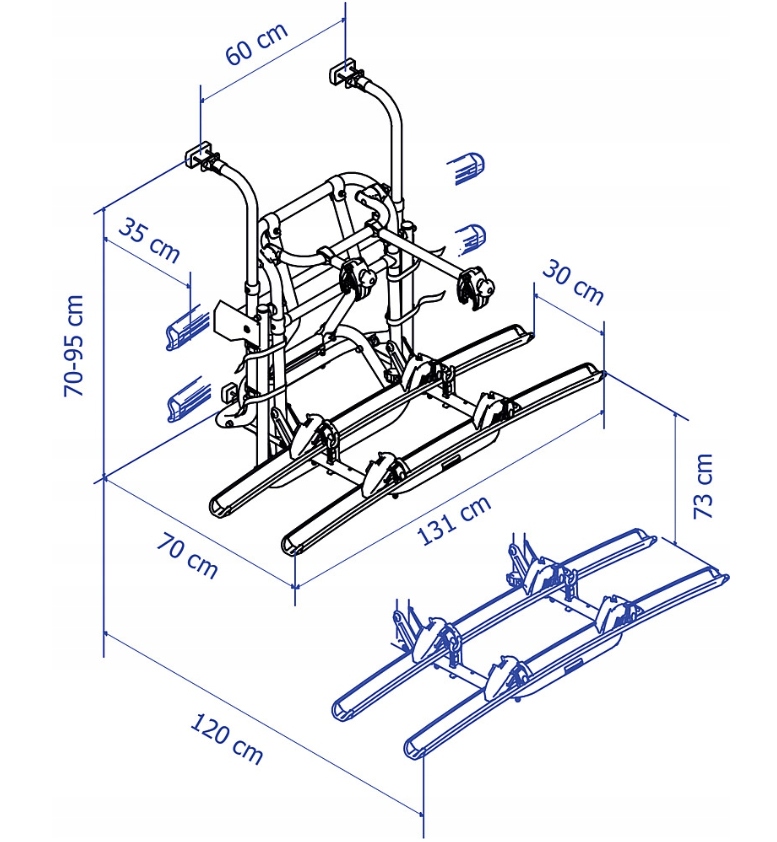 Пространство между велосипедами: 30 см (при перевозке двух велосипедов)