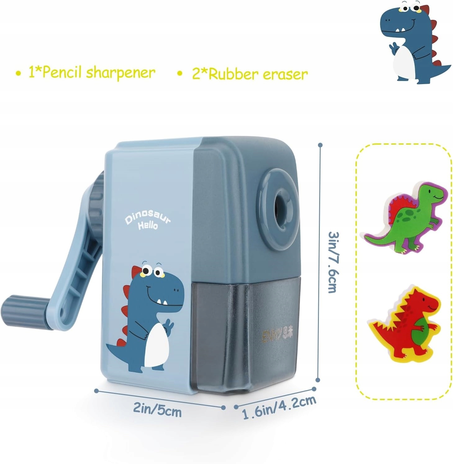 Уникальный, ручной воин для карандашей с мотивом очаровательного динозавра, который идеально подходит как для школы, так и дома. Благодаря твердому механизму и эргономическому дизайну точилка обеспечивает точное заточку карандашей в различных формах: круглые, треугольные и шестиугольные, диаметр до 8,5 мм.