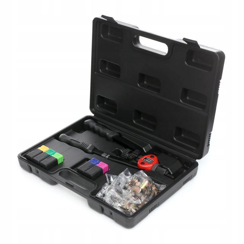 - Заклепочник КД10558 имеет 5 размеров наконечников, адаптированных под заклепочные гайки.