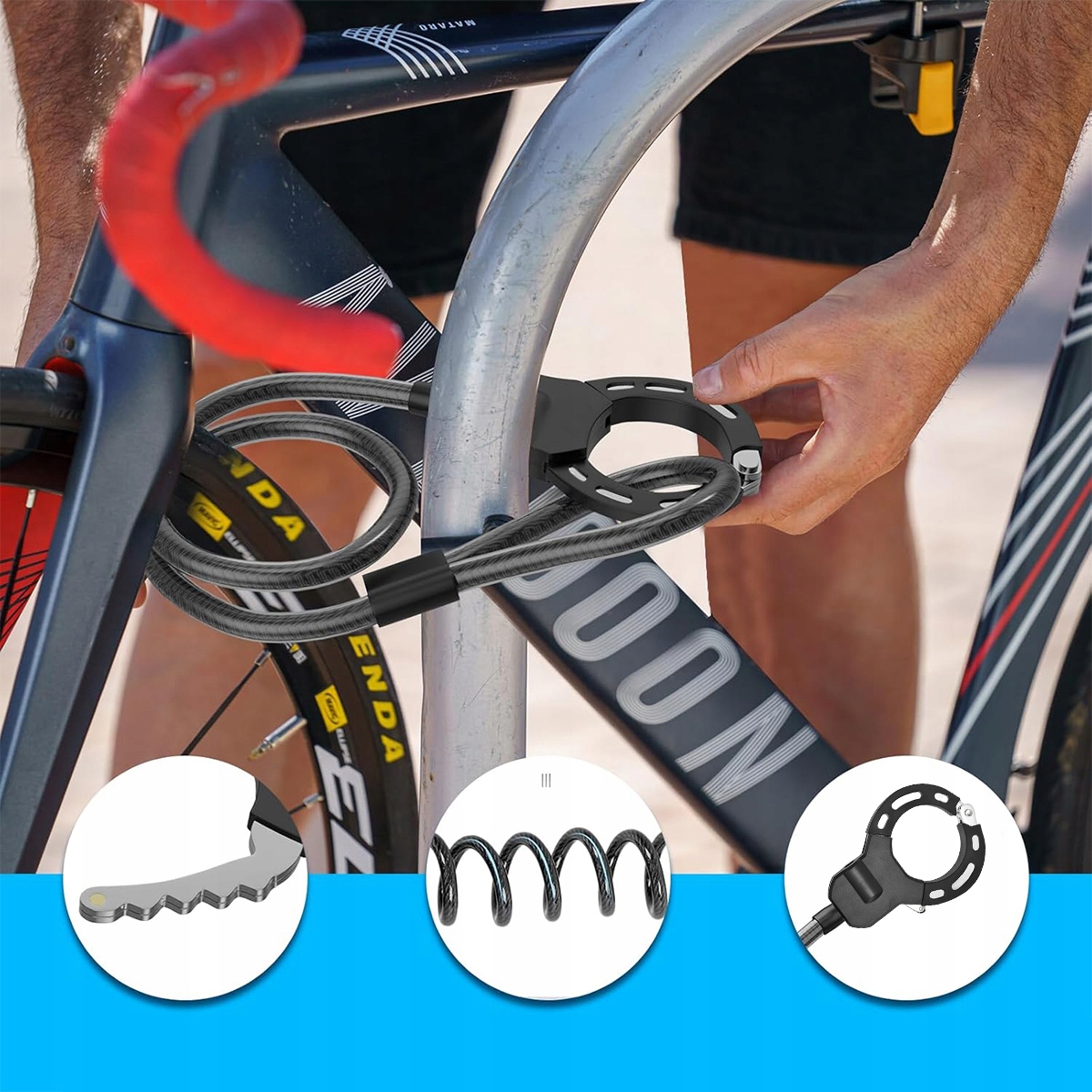 Ядро блокировки высокого качества - кабельные блокировки используют высококачественное ядро блокировки меди, которое предотвращает ржавчину после контакта с дождевой водой. Как замок, так и кабель покрыты высококачественным силиконом, который обеспечивает дополнительную защиту от ржавчины, износа, ссадин и перекрестков.