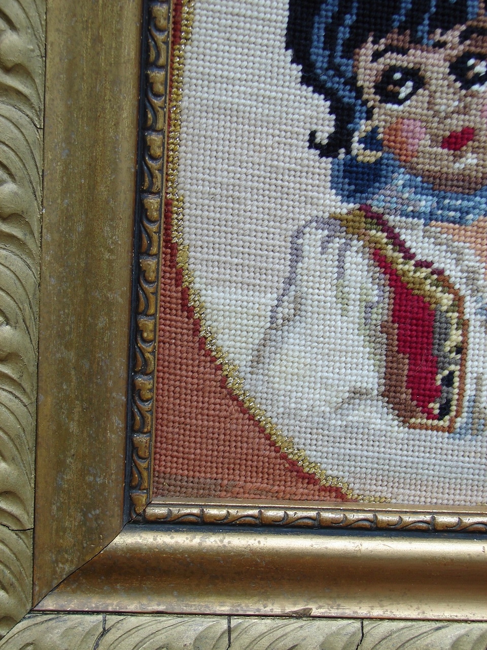 Мотив в старой деревянной раме с гипсовой штукатуркой.