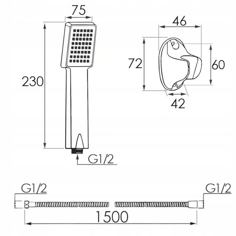 Душевой гарнитур однофункциональный со шлангом и настенным держателем. Он изготовлен из твердого и прочного материала, покрыт порошковой краской черного цвета.
