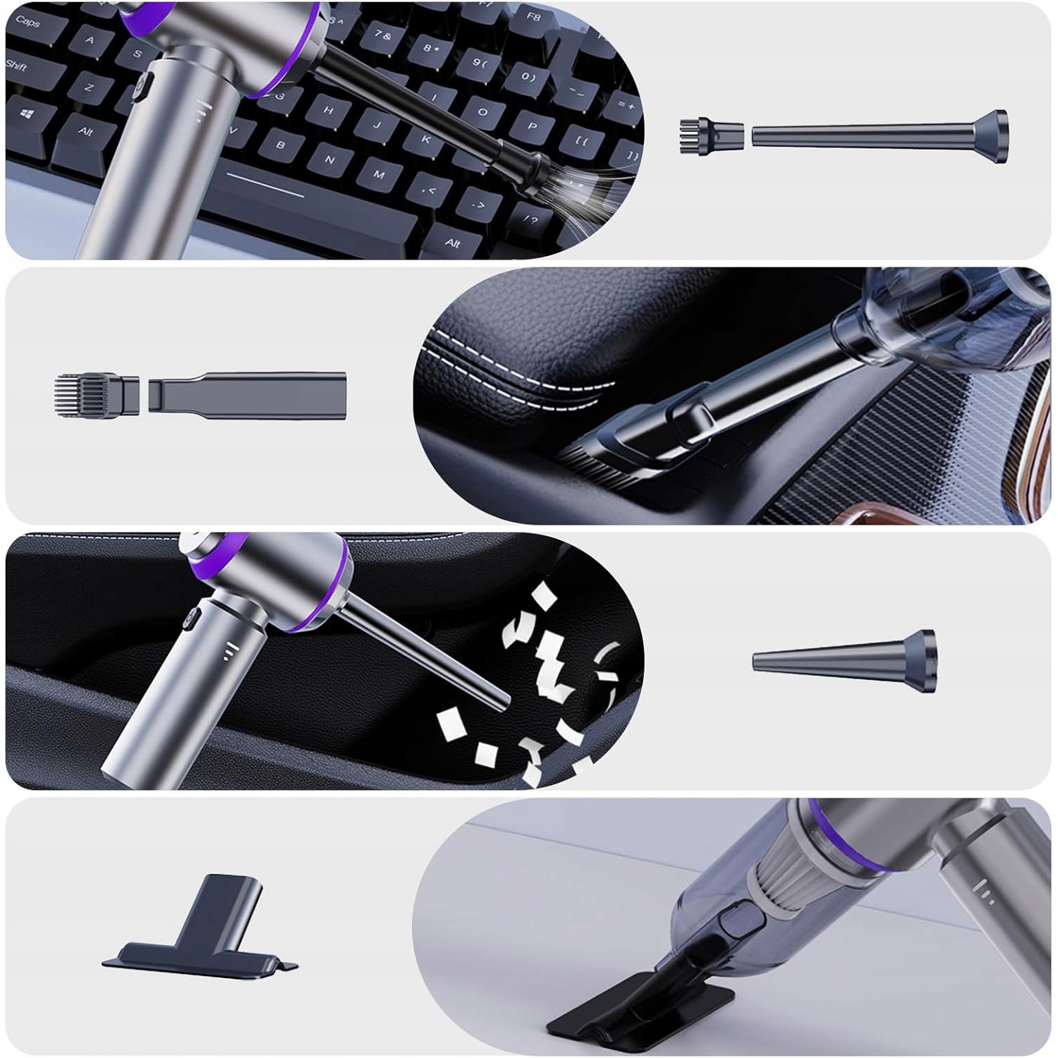 Этот беспроводной автомобильный пылесос — это больше, чем просто пылесос. Он также поставляется с различными насадками, поэтому вы можете продувать, всасывать и надувать его для выполнения различных задач по уборке и техническому обслуживанию. Оснащенный различными аксессуарами, он может выполнять различные сцены выдувания, сосания и накачки.