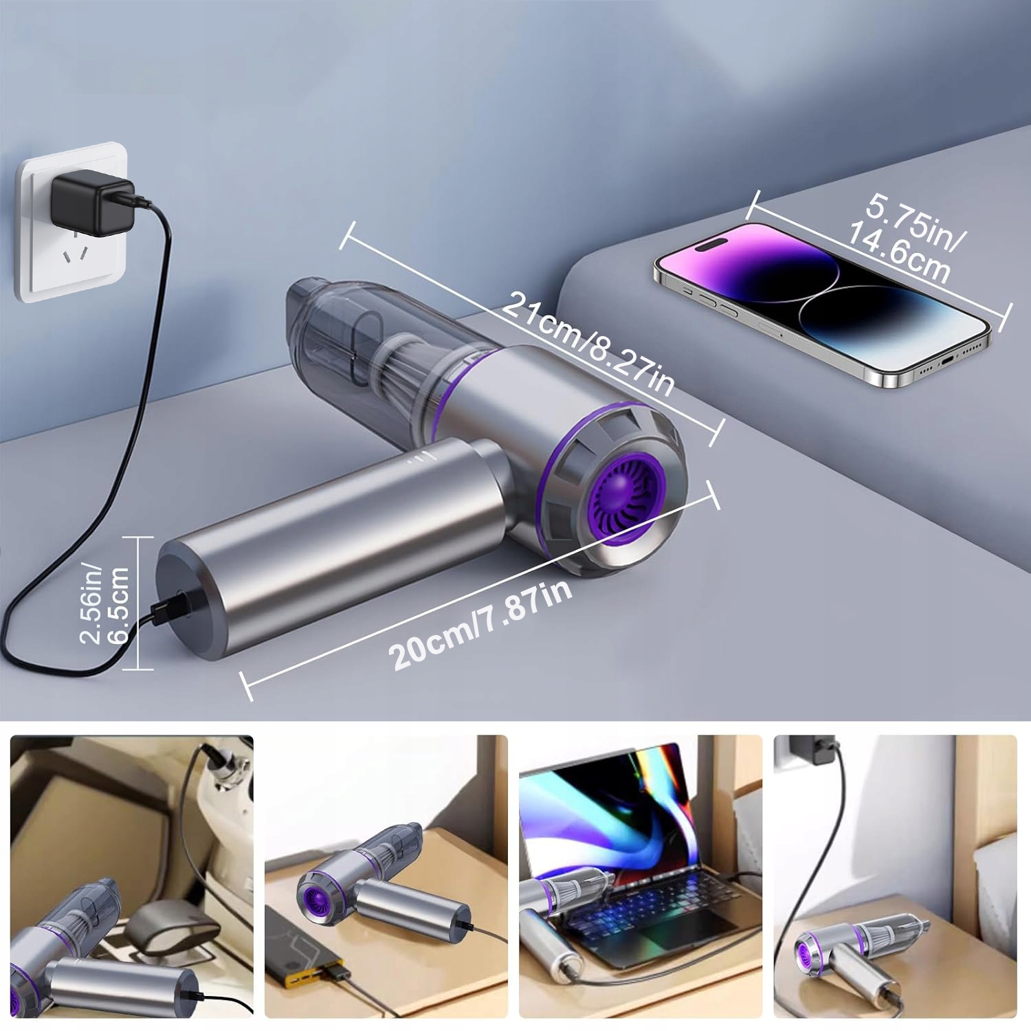 Этот портативный беспроводной пылесос, оснащенный литиевой батареей емкостью 6000 мАч, можно полностью зарядить за 3–3,5 часа и обеспечивает до 12 минут автономной работы в высоком режиме, 18 минут в среднем режиме и 30 минут в низком режиме. Уровень шума поддерживается на уровне ниже 80 дБ, что обеспечивает бесшумную уборку.