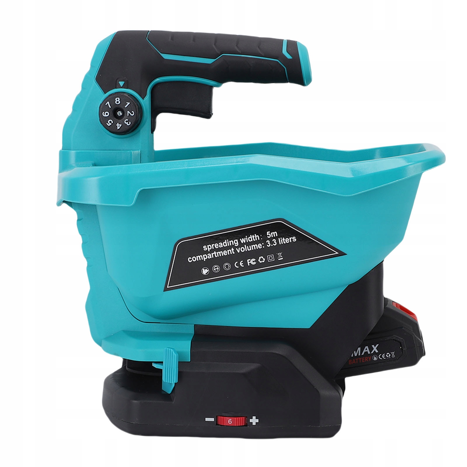 2. Большая вместимость и охват: этот разбрасыватель с объемом 4 литра и максимальным углом разбрасывания 125 эффективно покрывает большие площади, что делает его идеальным для различных применений.