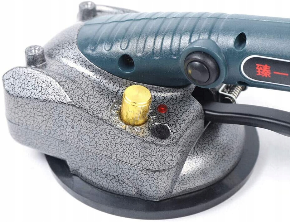 3. Поместите машину на укладываемую плитку, возьмитесь за присоску и возьмите плитку. Нажмите переключатель, чтобы начать работу и сразу же разровнять выступающую часть плитки.