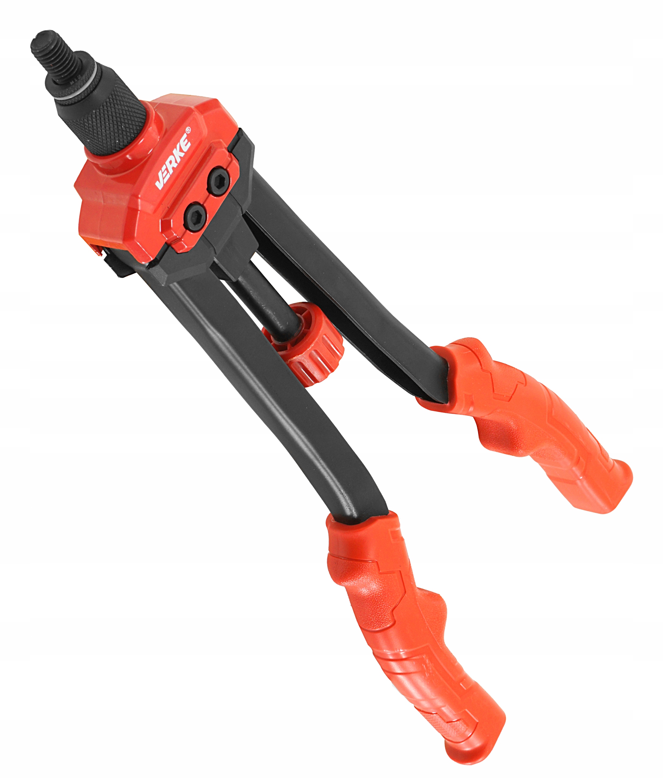 Ручной заклепочник для заклепок-гаек М3-М12 фирмы VERKE. Заклепочник предназначен для соединения материалов с помощью заклепочных гаек. Выполняет соединения материалов с помощью заклепок-гаек. втулка с внутренней резьбой. Позволяет крепить дополнительные элементы с помощью металлических винтов или винтов. Изготовлены из прочной хромомолибденовой инструментальной стали. Ручки покрыты нескользящим резиновым покрытием. В комплект входят: