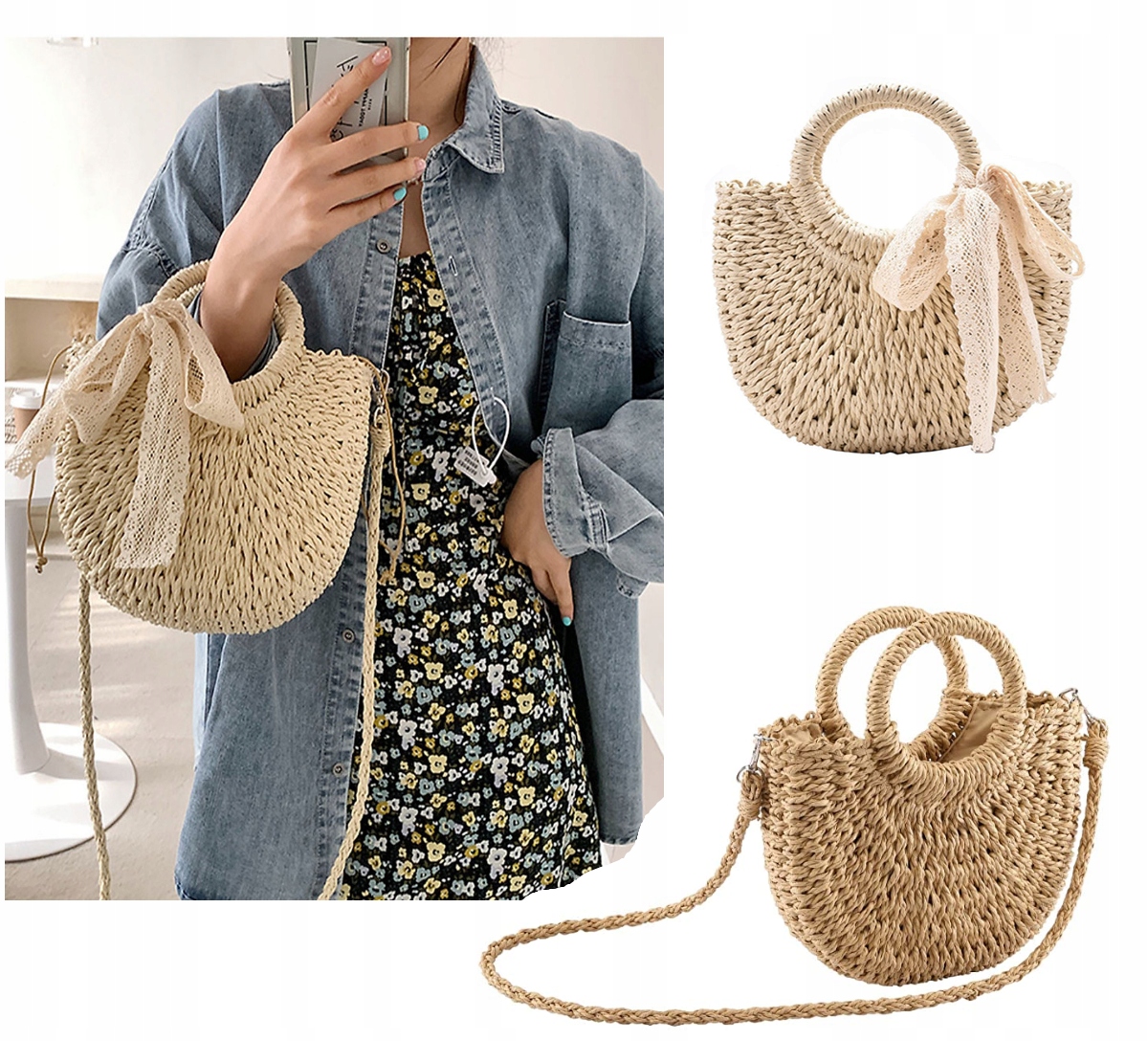 SHAPE SUMMER BASKET, СУМКА С ПЛЕЧОМ НА ВЕСНУ/ЛЕТО С БАНТОМ