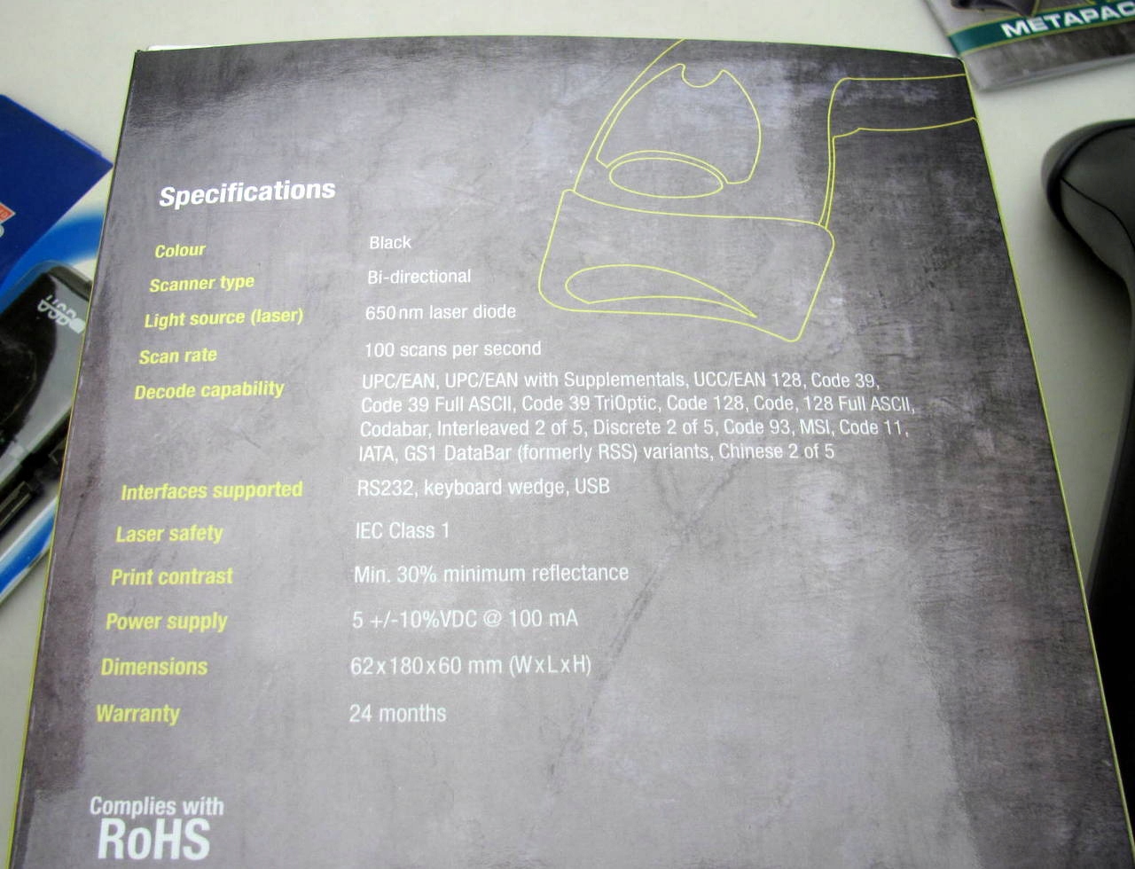 Сканер штрих-кода Metapace S1, подключение USB, 1D