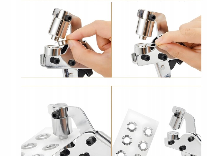 ⭐Практичный набор петель, который облегчит вам работу с различными материалами. Благодаря прочной конструкции и эргономичному использованию вы можете быстро и точно прикрепить люверсы к брезенту, баннерам, одежде или шторам.