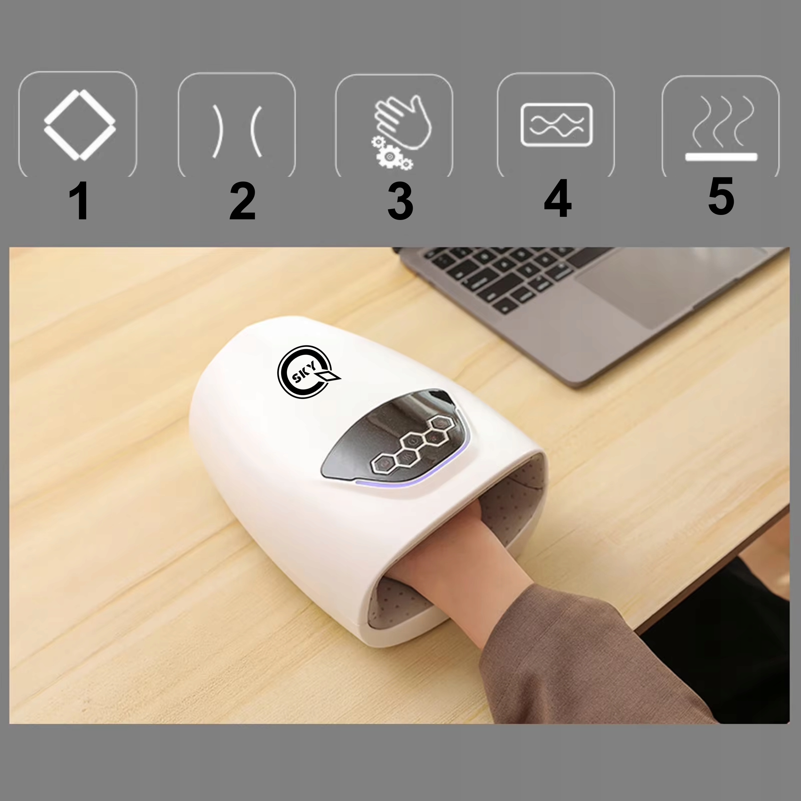 1⃣ сжатие воздуха - технология сжатия воздуха, которая осторожно сжимает руку. Области. Обеспечивает приятное тепло, которое работает на мышцах и расслаблении суставов