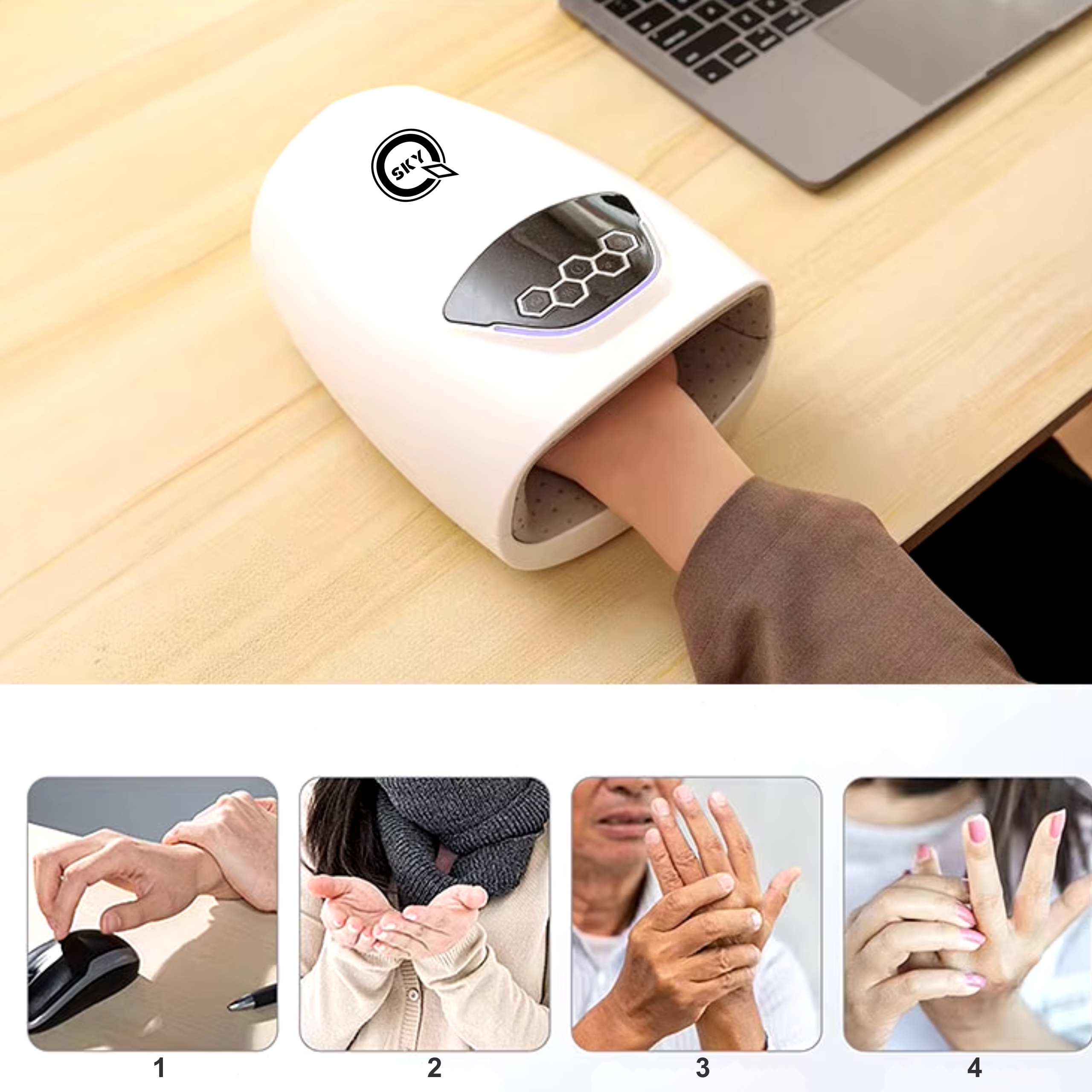 Массажер посвящен людям, страдающим от ручных, запястья, дегенерации суставов, гемиплегии и других проблем, связанных с мышечным тоном. также можно использовать для ежедневной релаксации, Усталость и улучшение кровообращения