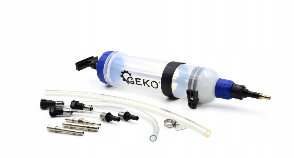 Ручной пылесос от известного бренда инструментов GEKO объемом 1,5 л.Устройство предназначено для отсасывания и впрыскивания масла и других рабочих жидкостей в труднодоступные места.