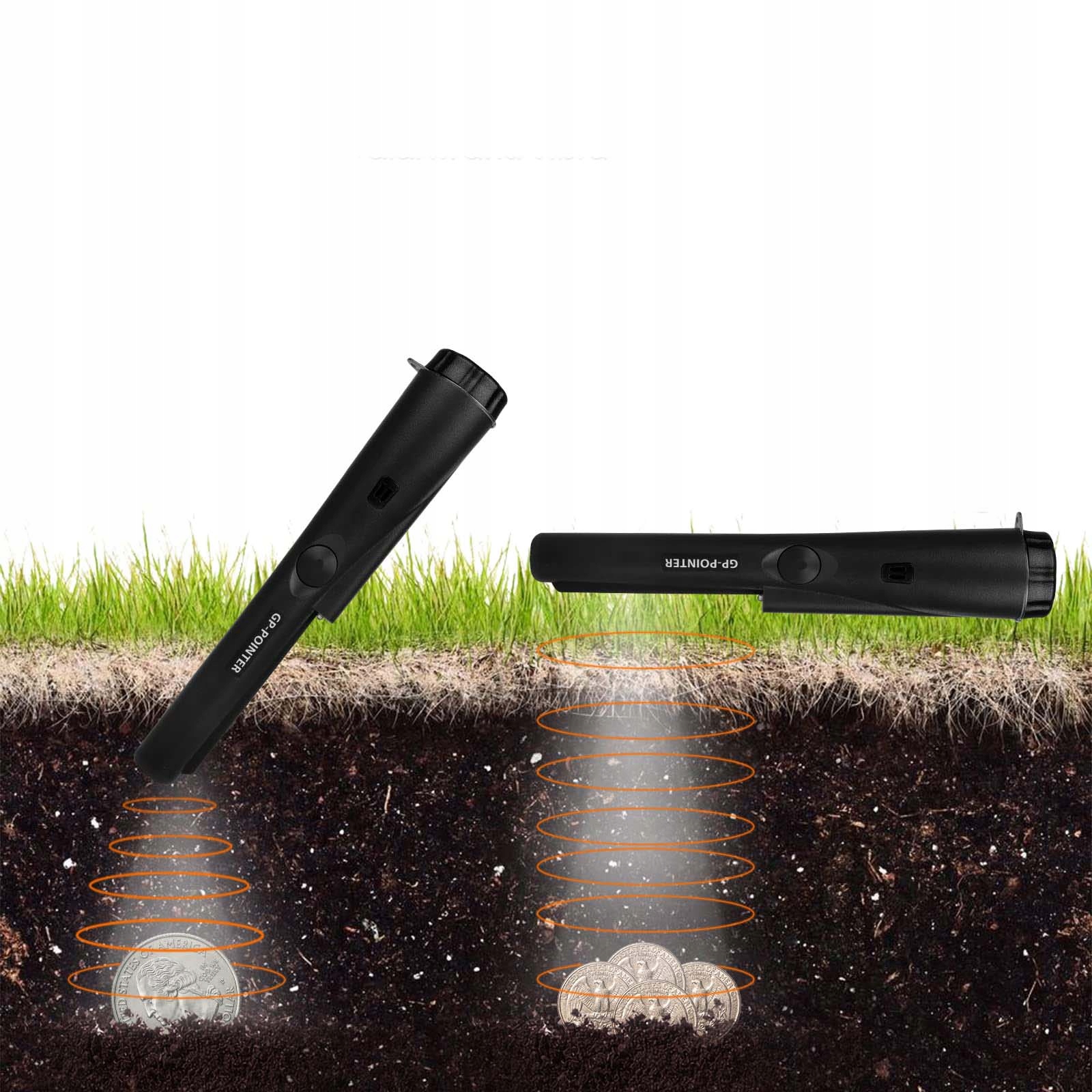 ① Штифт металлоискателя поможет вам добиться точного позиционирования на небольшой площади, чего не могут сделать большие металлоискатели