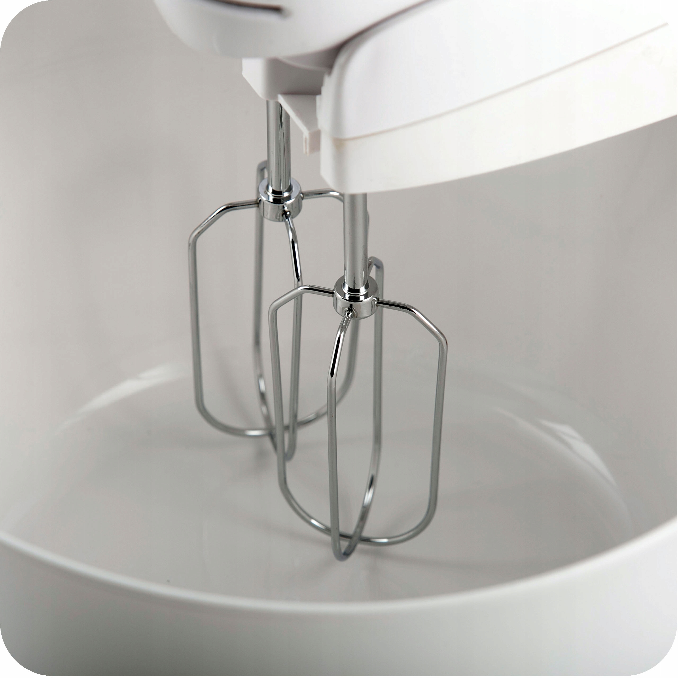 Удобный кухонный миксер максимальной мощностью 550 Вт.Незаменим для всех, кто печет торты и печенье. Позволяет использовать 5 различных скоростей в зависимости от типа приготавливаемого блюда. Это делает его пригодным как для смешивания муки с другими ингредиентами, так и для взбивания яиц. При необходимости вы также можете использовать функцию «Турбо». Робот практичен и долговечен, поэтому его можно использовать в течение длительного периода времени без риска поломки. Вращающаяся чаша с приводом не требует от пользователя держать робота в руке, что делает робота более удобным, чем стандартные модели.