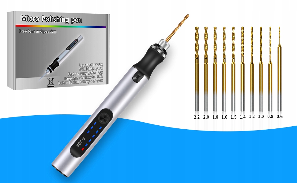В комплект входят 10 сверл разных размеров (0,6, 0,8, 1,0, 1,2, 1,4, 1,5, 1,6, 1,8, 2,0, 2,2 мм), изготовленных из высококачественной быстрорежущей стали HSS, которая отличается особой твердостью и долговечностью. С помощью этой ручной дрели по дереву вы можете создавать уникальные произведения искусства или украшения из дерева, такие как деревянные таблички, статуэтки, браслеты, ожерелья и брелки, а также проявлять свои творческие способности.