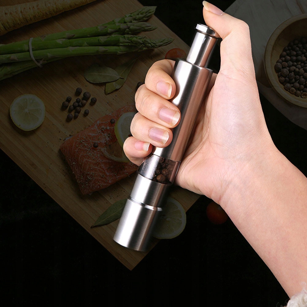 ✅Это прессовый тип, простой в использовании, изготовлен из нержавеющей стали, здоровый и визуальный, помол можно увидеть. Он имеет широкий спектр применения и может измельчать различные пищевые материалы, например перец.