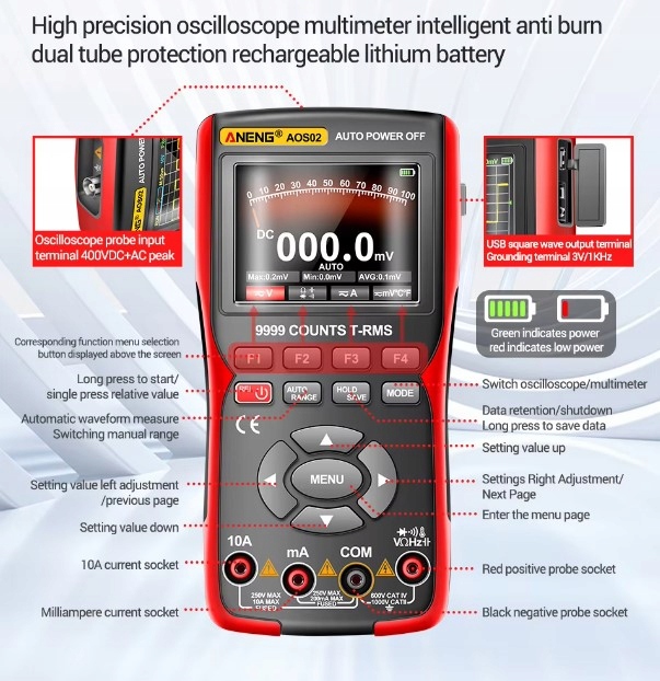 - Мультиметр + осциллограф Aneng AOS02 черный+красный