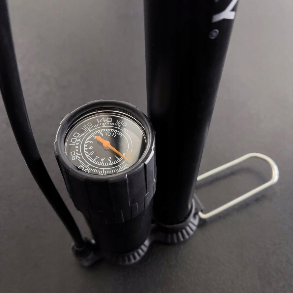С помощью встроенного манометра с двойной шкалой можно измерить количество воздуха в двух единицах давления: бар и фунт на квадратный дюйм. Насос на стойке с манометром позволит точно накачать шины перед поездкой. Манометр также имеет хорошо видимый индикатор оранжевого цвета, что значительно повысит комфорт даже в более сложных погодных условиях.