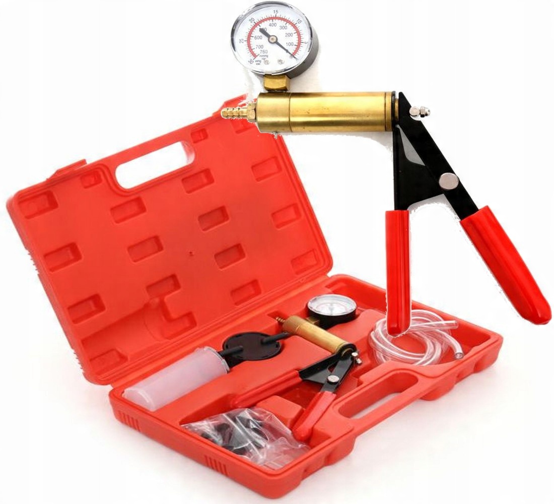 Набор позволяет проверять гидравлические автомобильные детали. Его можно использовать для вентиляции гидравлических систем или сифонов. Оснащен интегрированным вакуумным датчиком.