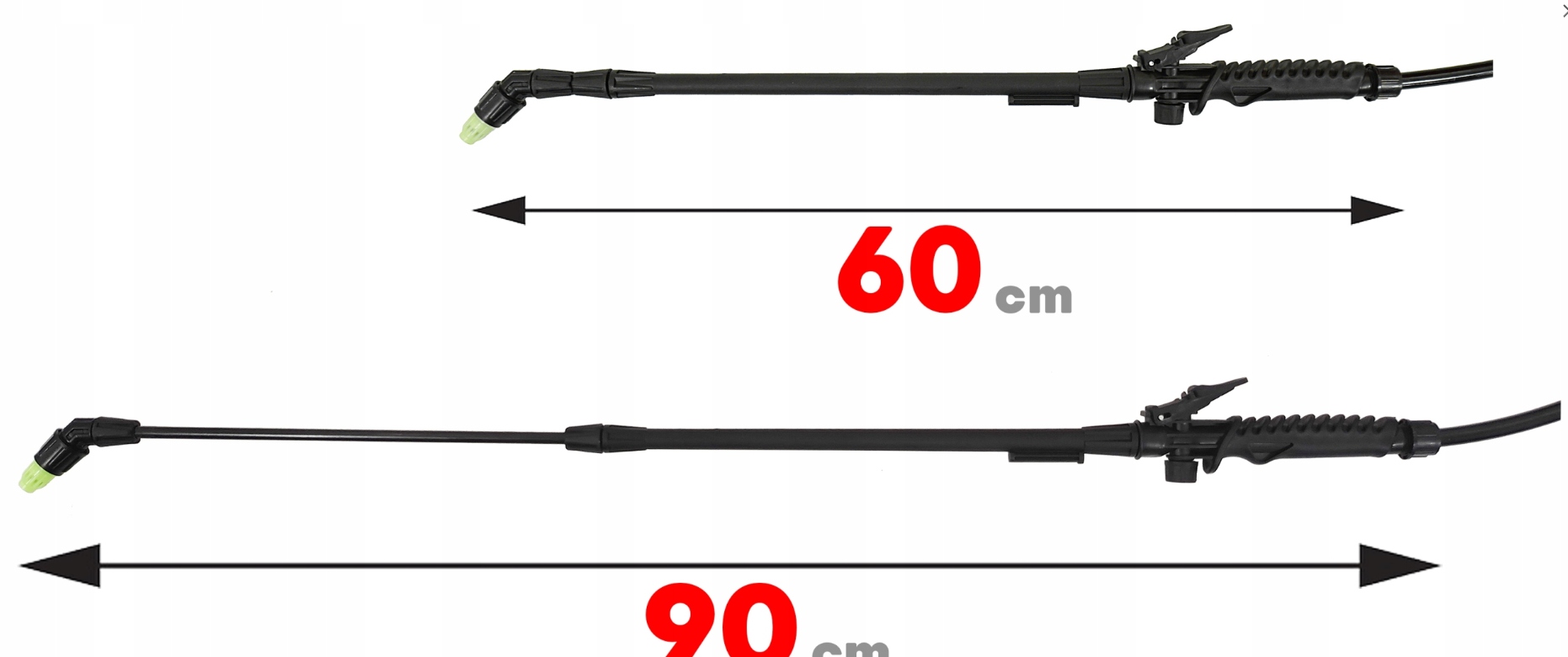 Копье изготовлено из пластика, его длина регулируется от 60 до 90 см. Позволяет опрыскивать как кусты, так и деревья – достаточно вытянуть копье.