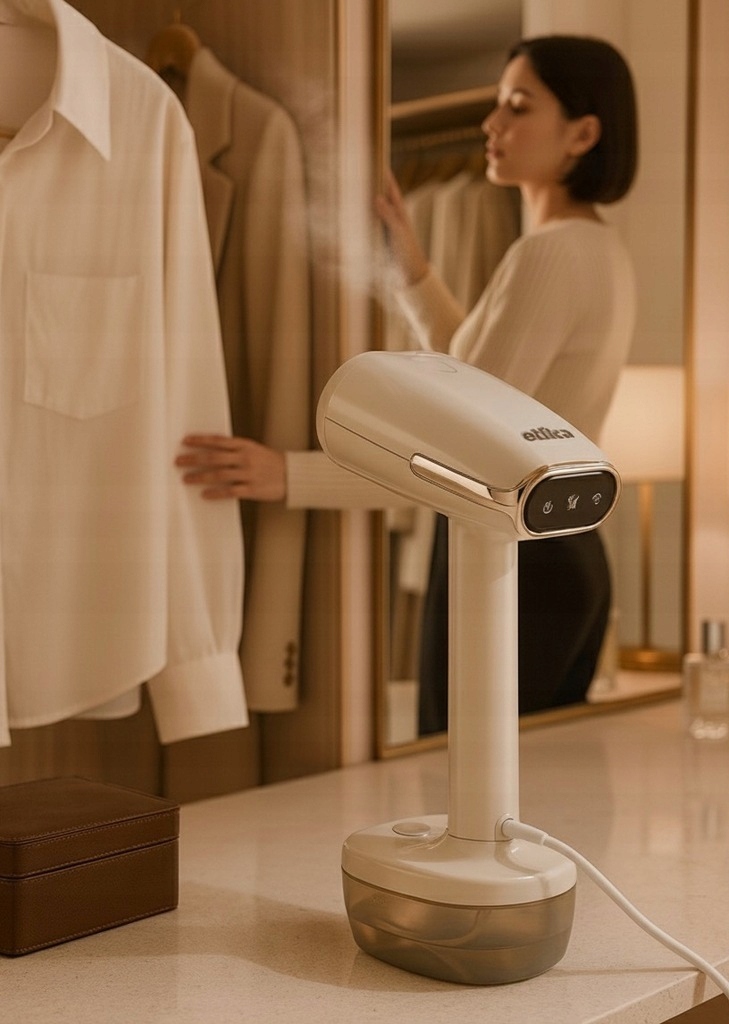 ➡️ Высокая мощность означает не только экспрессный нагрев,, но и постоянную, интенсивную струю пара, не теряющую эффективности в процессе работы. Независимо от того, гладите ли вы одну блузку или весь гардероб, отпариватель Etika обеспечивает эффективность, комфорт и экономию времени. Это продуманное решение для людей, которые хотят выглядеть идеально без лишнего ожидания.