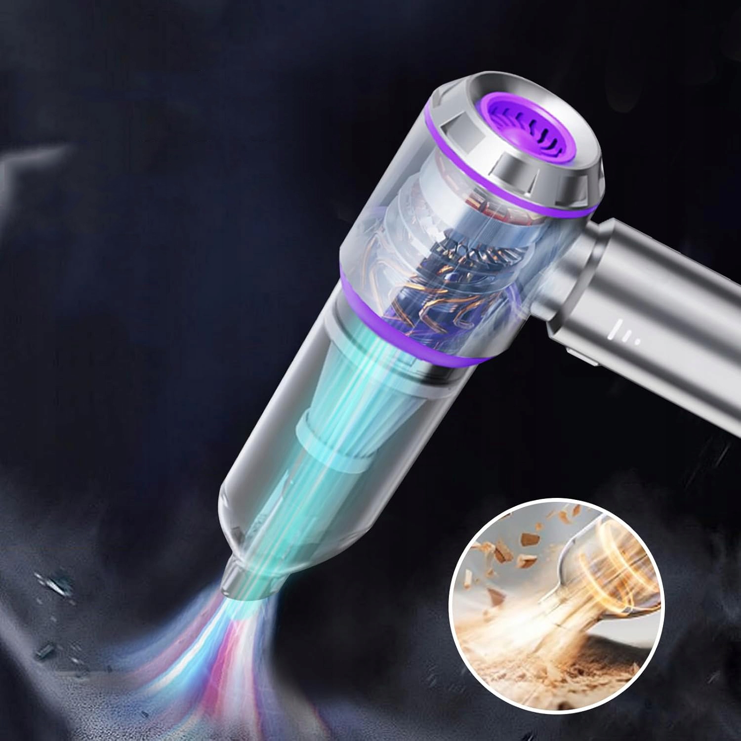 Пылесборник и HEPA-фильтр беспроводного ручного пылесоса являются съемными, многоразовый и очищаемый фильтр продлевает время использования автомобильного пылесоса. Очистите фильтр, чтобы убедиться, что пылесос работает правильно, если фильтр заполнен пылью.