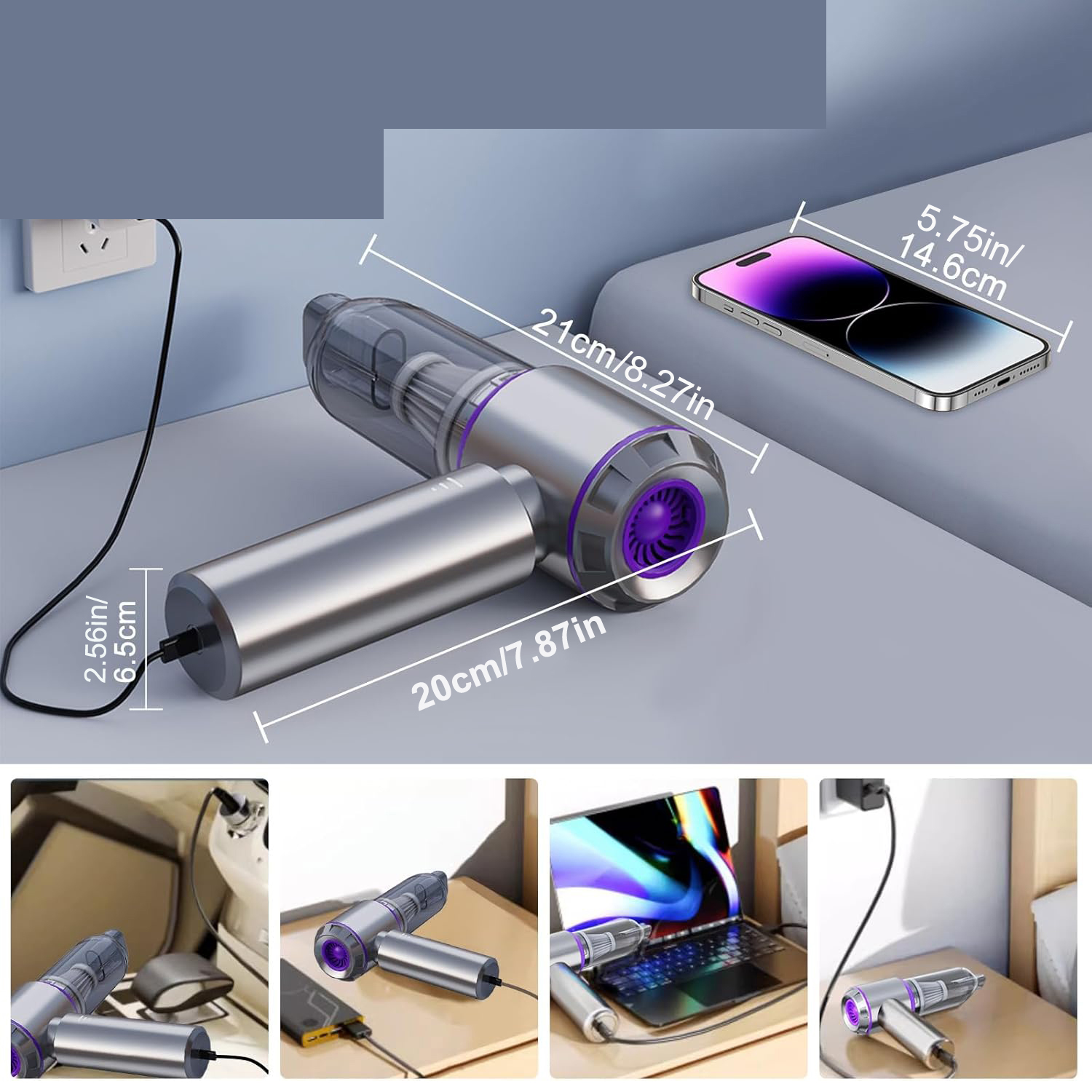 Беспроводной ручной пылесос оснащен бесщеточным двигателем мощностью 100 Вт с невероятной мощностью всасывания, который обеспечивает сверхмощность всасывания 16000 Па для уборки дома и автомобиля. Что поможет вам убрать пыль и шерсть домашних животных в автомобиле, на диване, на полу, рабочий шум ниже 80–85 дБ благодаря технологии шумоподавления, что делает его идеальным для ежедневной уборки.