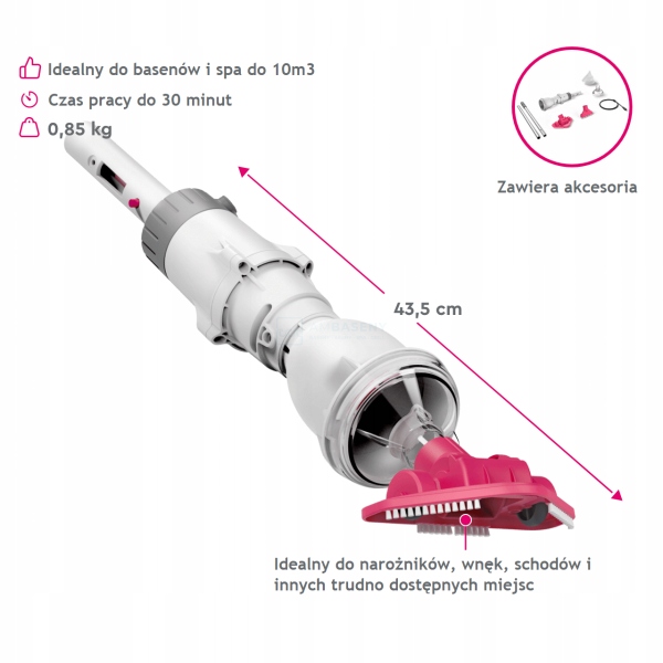 - Легкая очистка : высокая мощность всасывания и треугольная головка кисти для эффективной и простой очистки бассейнов до 10 мграни