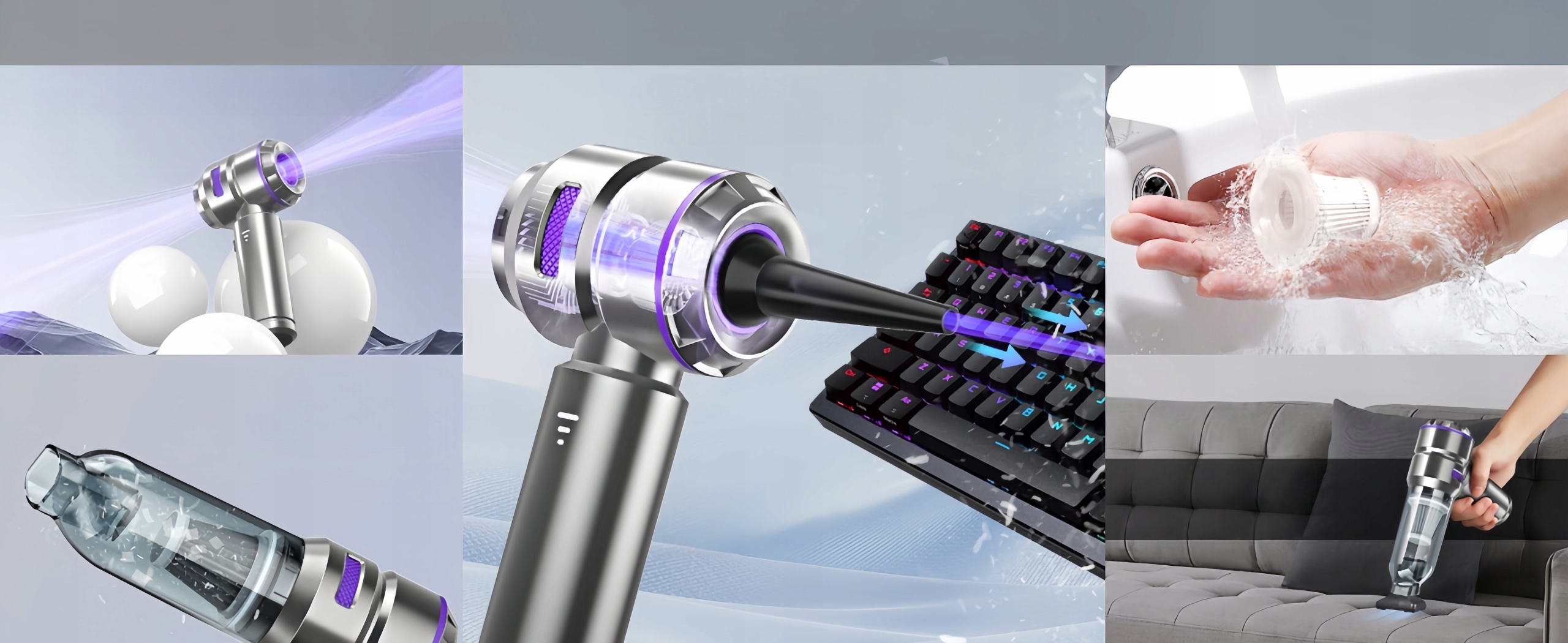 Пыль, шерсть домашних животных и пищевые крошки постоянно скапливаются в щелях диванов, пазах автомобильных стекол и под клавишами клавиатуры — местах, до которых трудно добраться традиционным чистящим средствам. Теперь, с этим профессиональным беспроводным ручным пылесосом, вы можете мгновенно насладиться безупречно чистыми поверхностями в любое время и в любом месте. Уборка становится легкой, тщательной и совершенно безграничной.