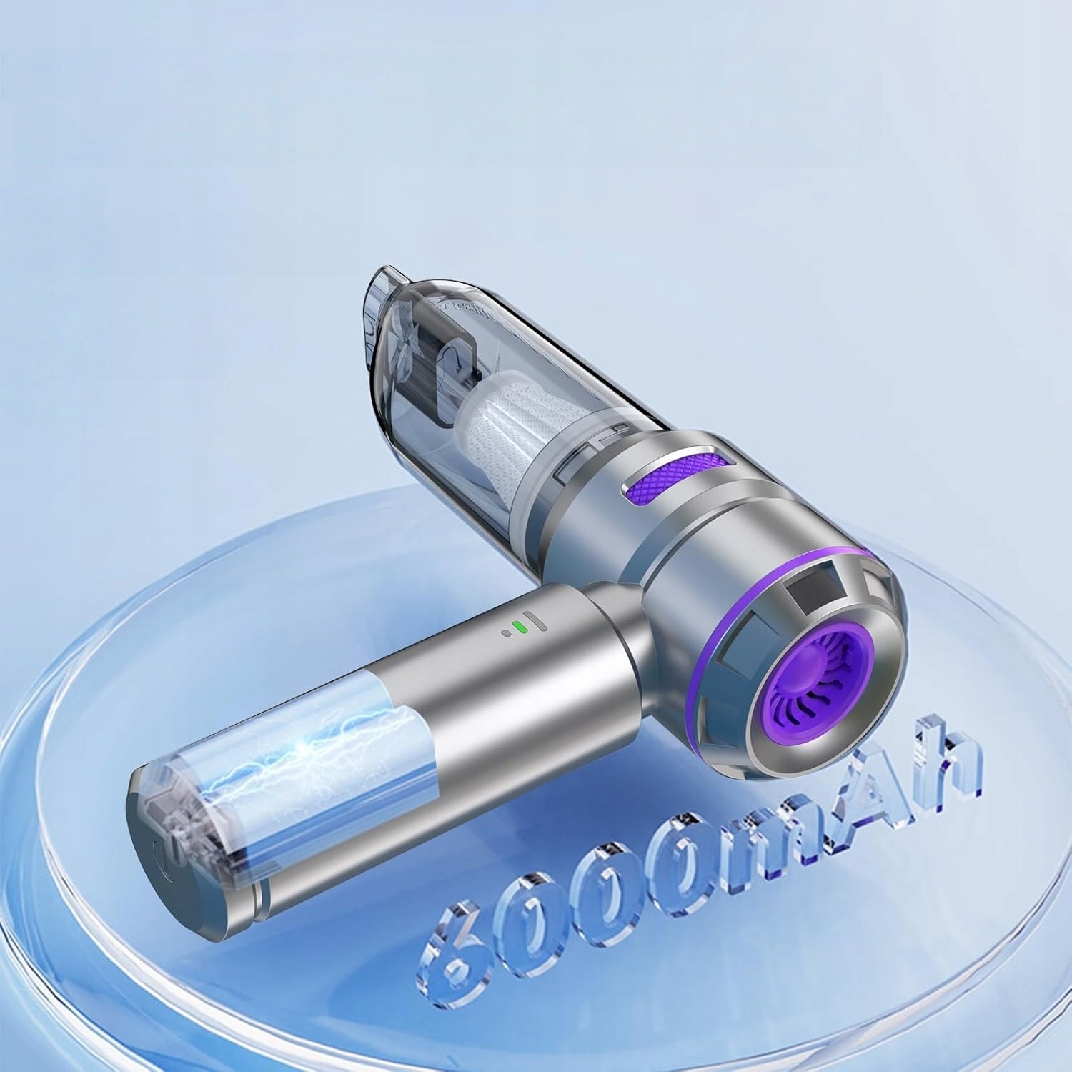 Оснащен тремя встроенными высококачественными литиевыми батареями емкостью 2000 мАч, обеспечивающими общую емкость 6000 мАч. Режим пониженного энергопотребления обеспечивает примерно 30 минут работы, чего достаточно для полной чистки автомобиля или удаления пыли в небольших и средних домах. Оснащенный универсальным портом быстрой зарядки Type-C, он полностью заряжается всего за 3 часа. Красные и зеленые светодиоды состояния зарядки предоставляют четкую визуальную информацию.