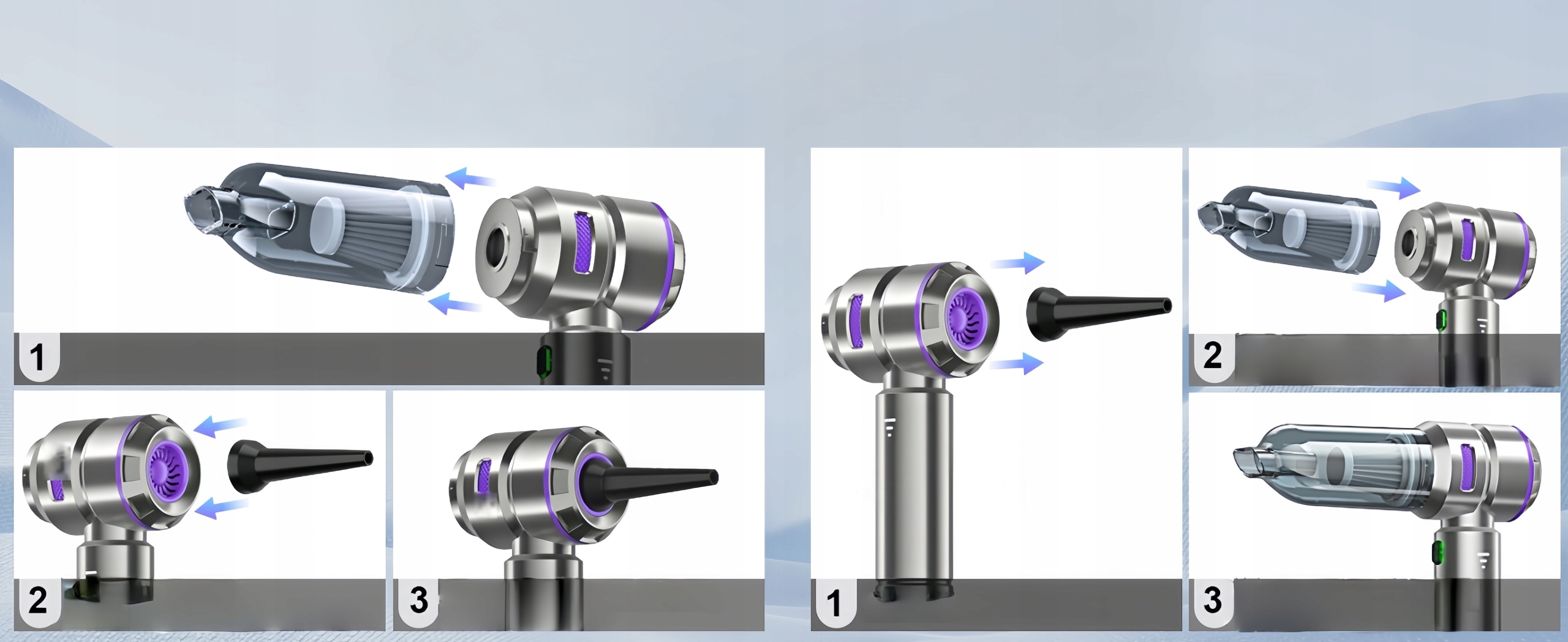 🌀Многофункциональный дизайн: пылесос + выдувание + откачка с помощью 9 профессиональных насадок
