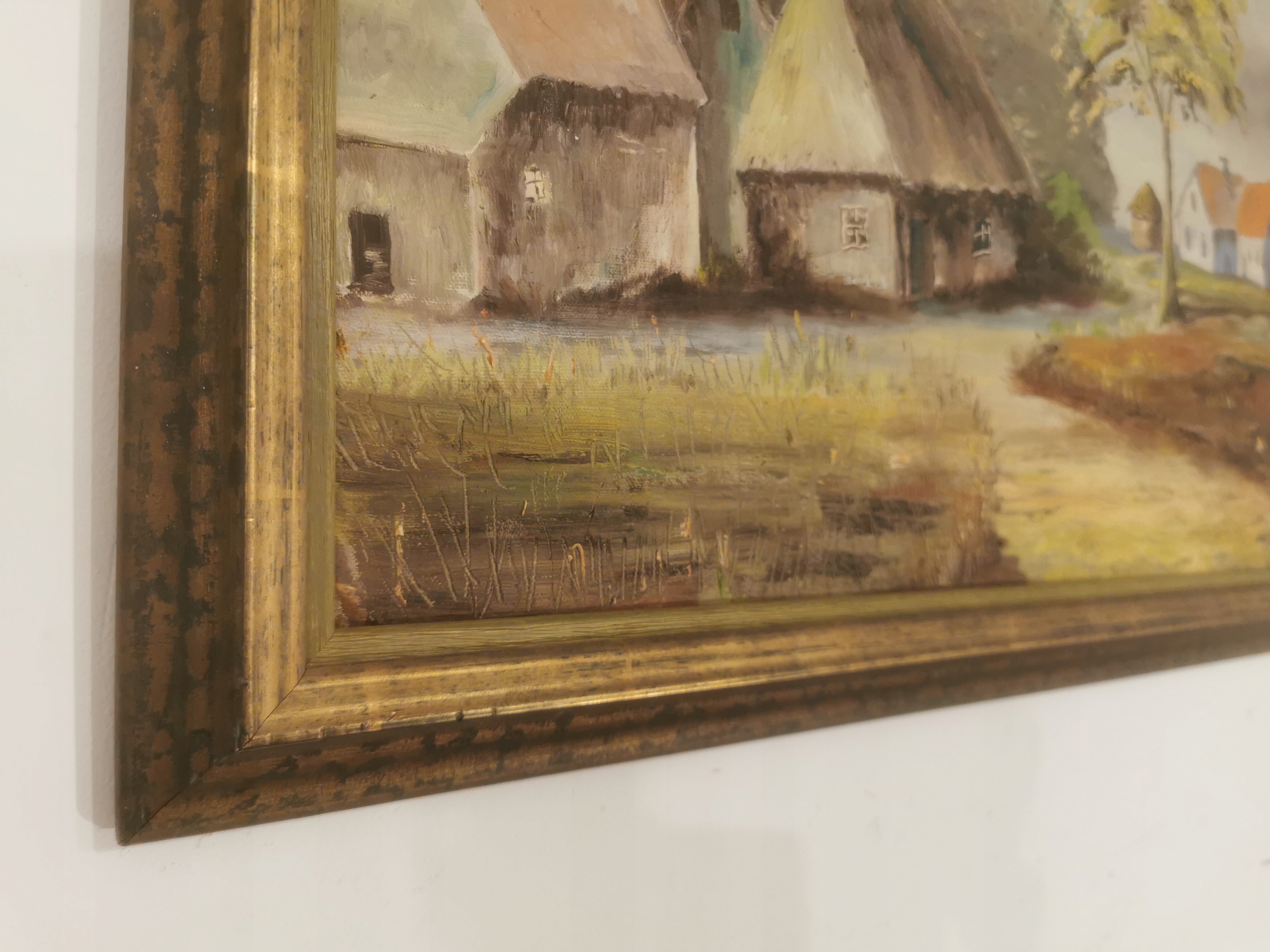 Ручная окрашенная масляная ландшафт на тарелке в раме 48x58