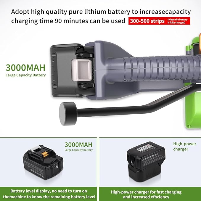 Надежная батарея с длительным сроком службы: встроенная батарея с напряжением 14,4 В и емкостью 3000 мАч обеспечивает стабильную производительность, нагрузки всего за 40-90 минут и достаточно для более 2000 циклов. Сопровождает вас более чем на 2000 эффективных сессий упаковки, обеспечивая надежную поддержку на работе