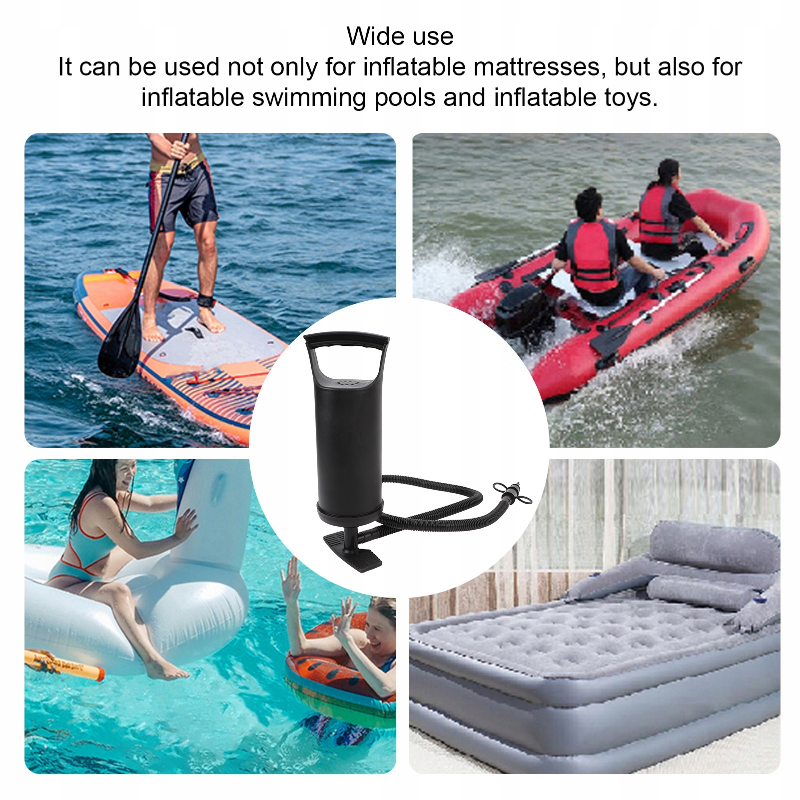 5. МНОГОФУНКЦИОНАЛЬНОСТЬ: подходит для надувных матрасов, надувных бассейнов, надувных игрушек и т. д., которые могут пригодиться для активного отдыха, походов, плавания и игр.