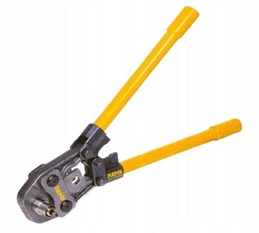 - Ручной радиальный пресс с запираемым концевым упором, для опрессовки соединений пластиковых и стабилизированных труб диаметром 10-26 мм.
