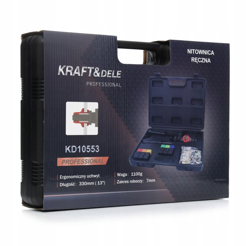 Профессиональный ручной заклепочник модели KD10553 от польского бренда KRAFT&DELE. Изготовлен из материалов высочайшего качества, включая сталь и алюминий.