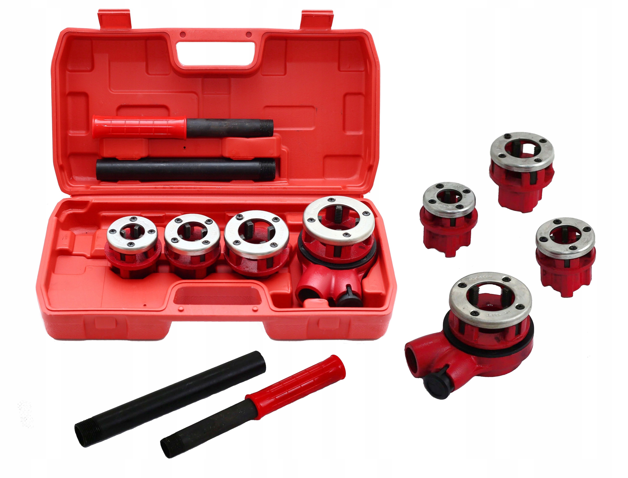 Гидравлический нарезной станок для труб в комплекте с 4 плашками . Устройство используется для нарезания резьбы на трубах и фитингах. Его можно использовать как при ремонте, так и при строительстве. Зубья резьбонарезного станка изготовлены из легированной стали CrV.