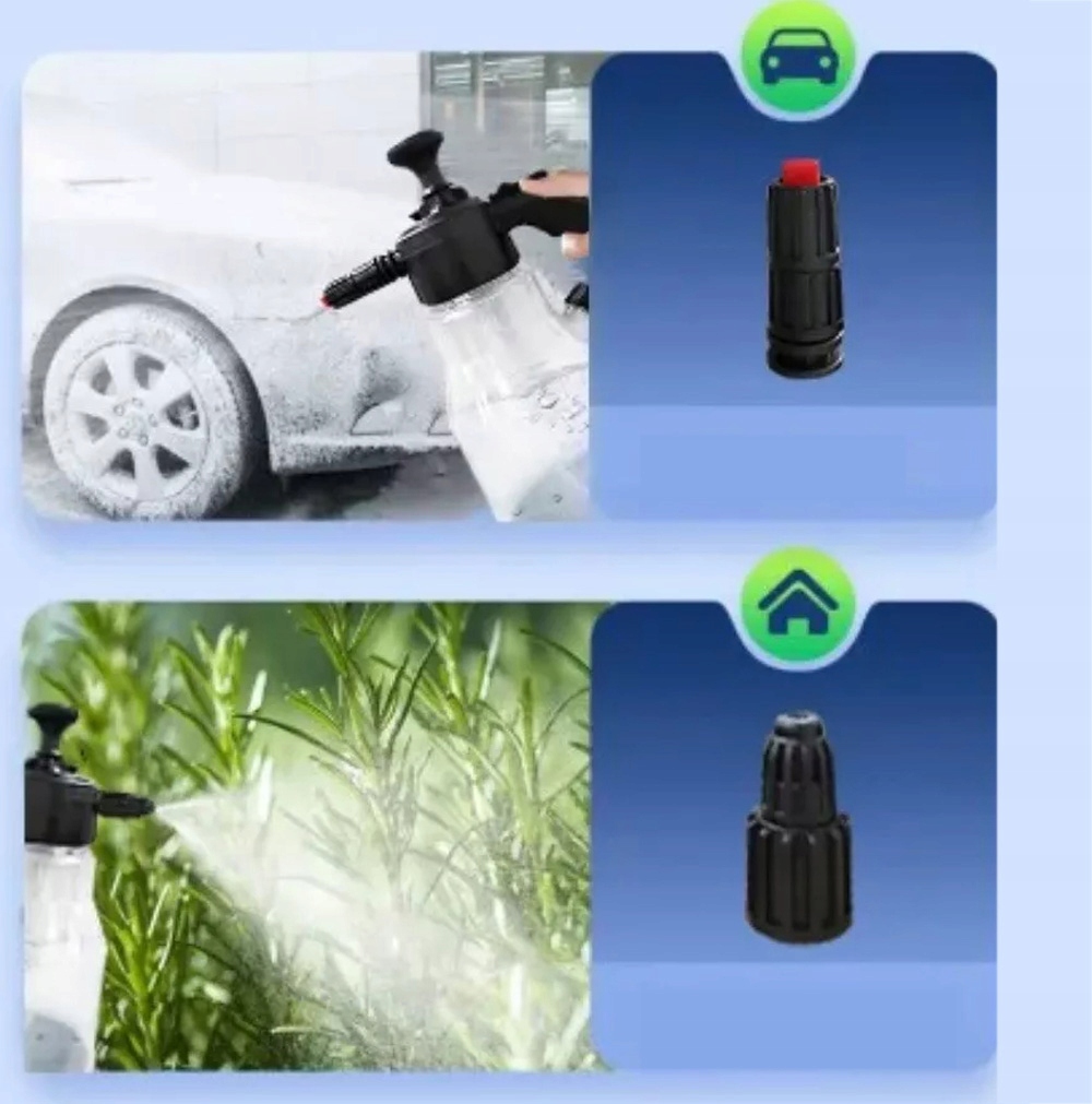 🚗-Оснащена 2 насадками, веерообразная насадка подходит для распыления пены, а круглая насадка подходит для распыления воды.