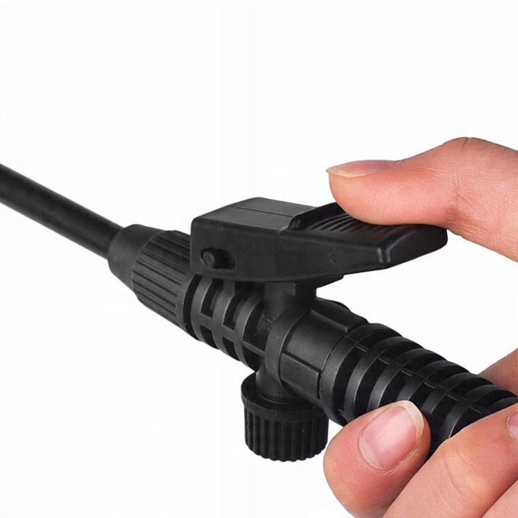 БЛОКИРОВКА ПУСКОВОГО РЫЧАГА - с помощью практичного запирающего механизма, состоящего из крючка и защелки, можно легко заблокировать спусковой рычаг. Такое решение чрезвычайно полезно при длительном распылении, минимизируя нагрузку на руки.