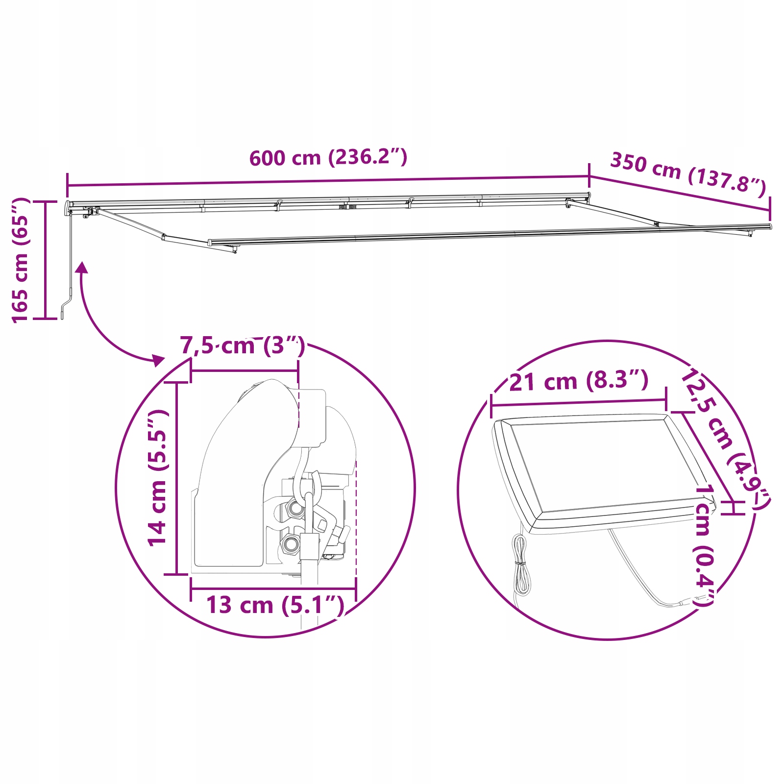 Ручной складной навес со светодиодом, 600x350 см, светло -серый, полиэстер h1>