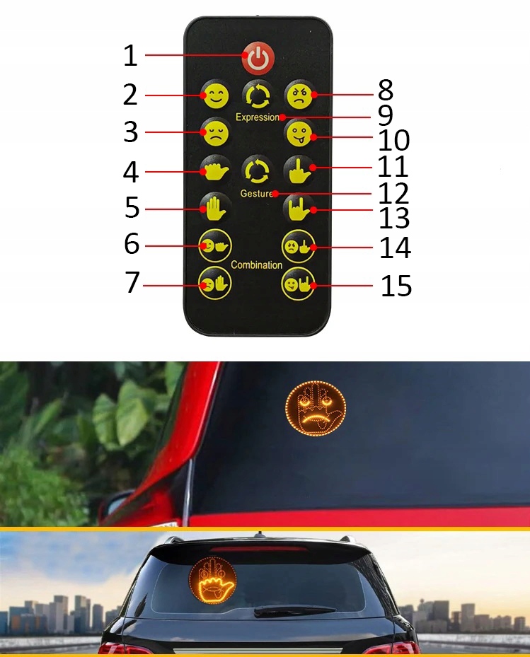 Автомобильный светодиодный индикатор жестов: 8 жестов/смайликов, пульт дистанционного управления, простая установка, 2 способа питания!