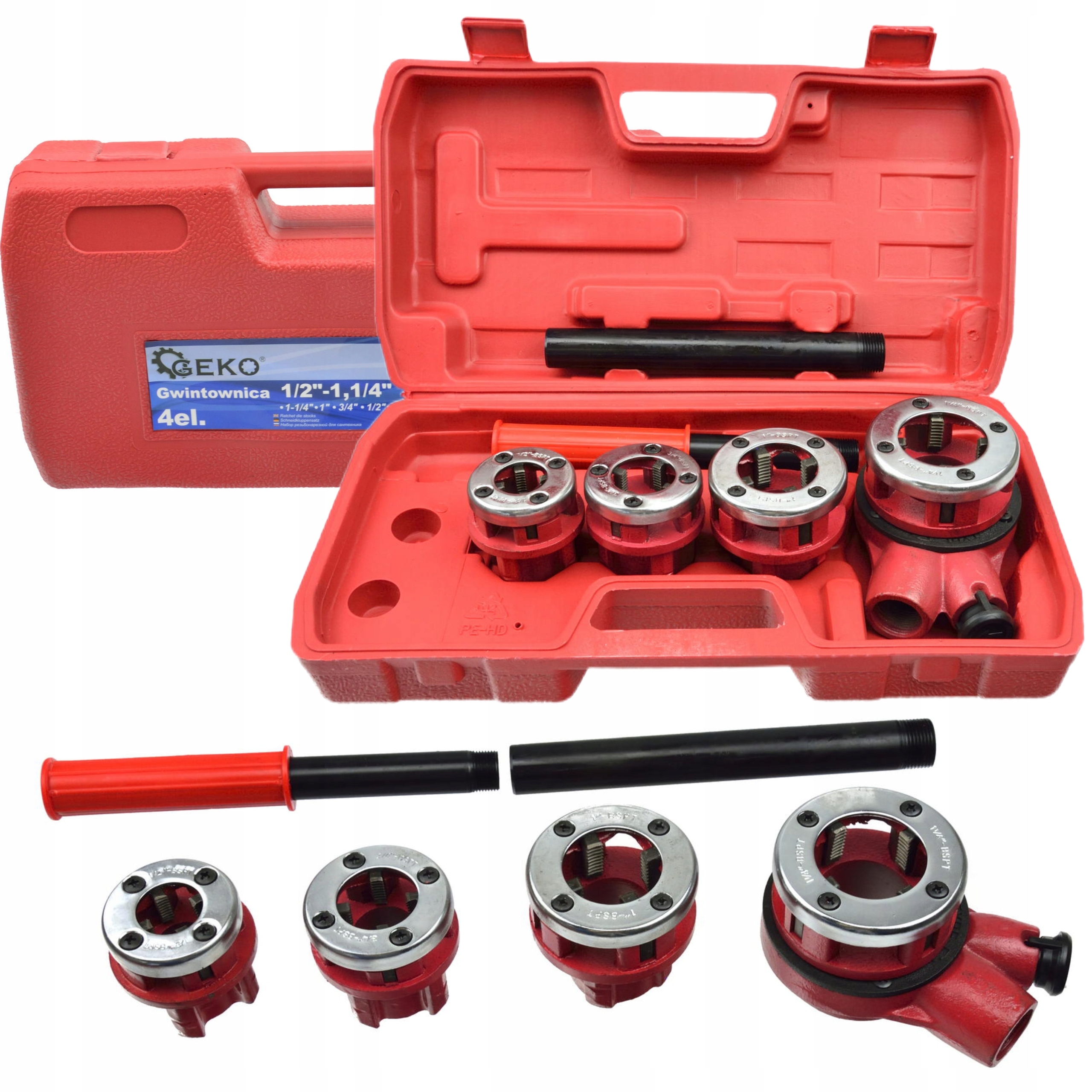 Нарезатель резьбы для гидравлических труб в комплекте с 4-мя плашками. Устройство используется для нарезания резьбы на трубах и фитингах. Его можно использовать как при ремонте, так и при строительстве. Зубья резьбонарезные изготовлены из легированной стали CrV с твердостью HRC в диапазоне 58-62. Чугунный корпус матрицы.