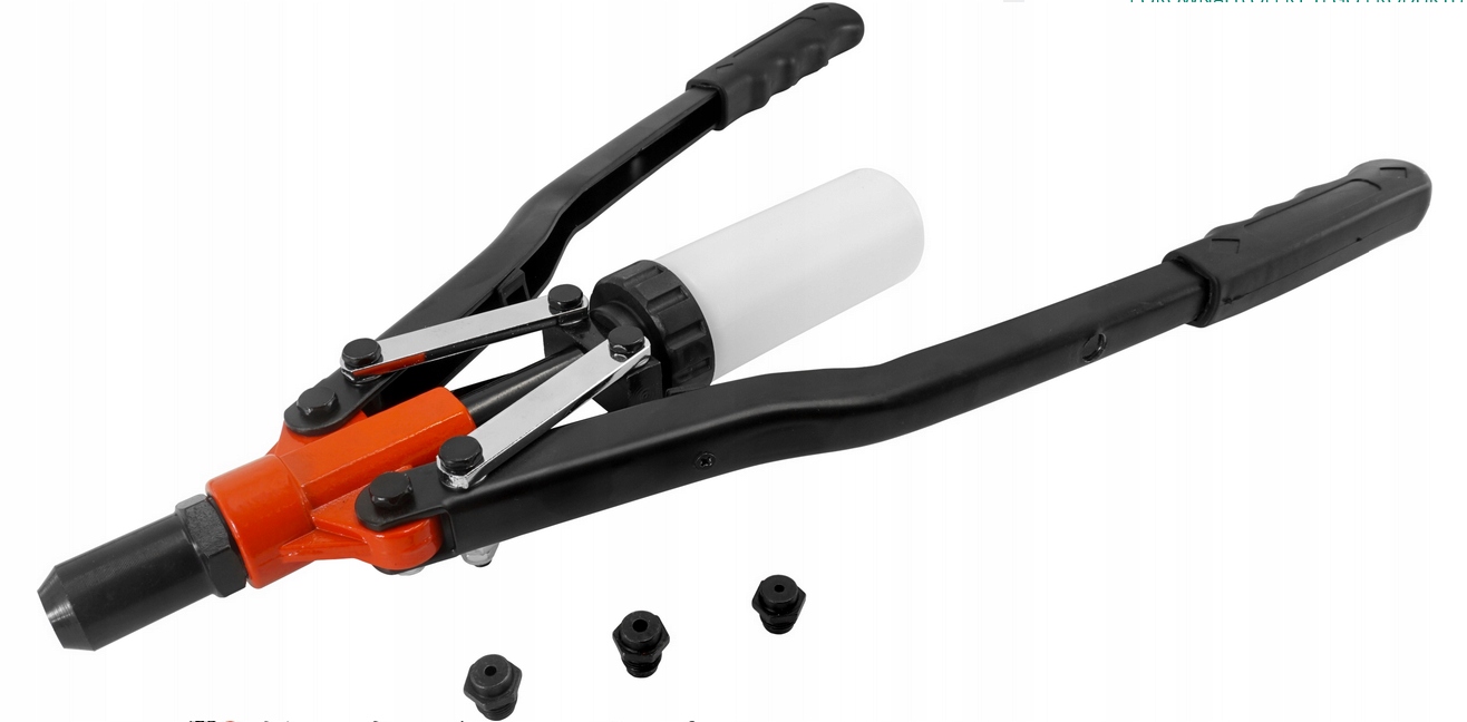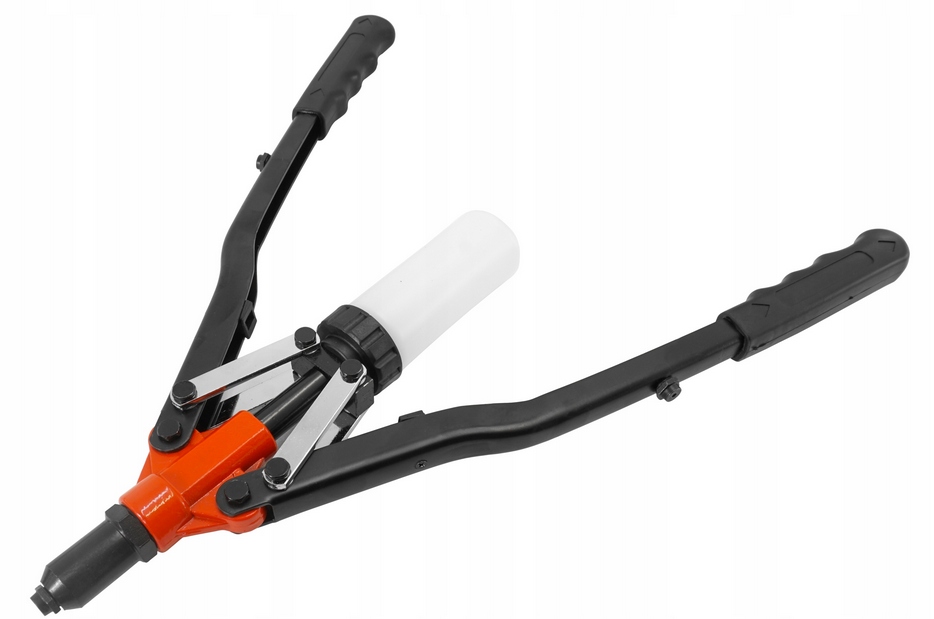 ручные стразы, предназначенные для сломанного алюминия, меди, стали и нержавеющих заклепок в диапазоне от 3,2 до 4,8 мм. Корпус и ручка из углеродистой стали. У вяжущего механизма есть три челюсти. Благодаря соответствующей толщине стенки и должным образом выбранной длины мы используем заклепку без применения больших усилий. Танк для сломанных сердечников позволяет вам поддерживать рабочее место в чистоте.