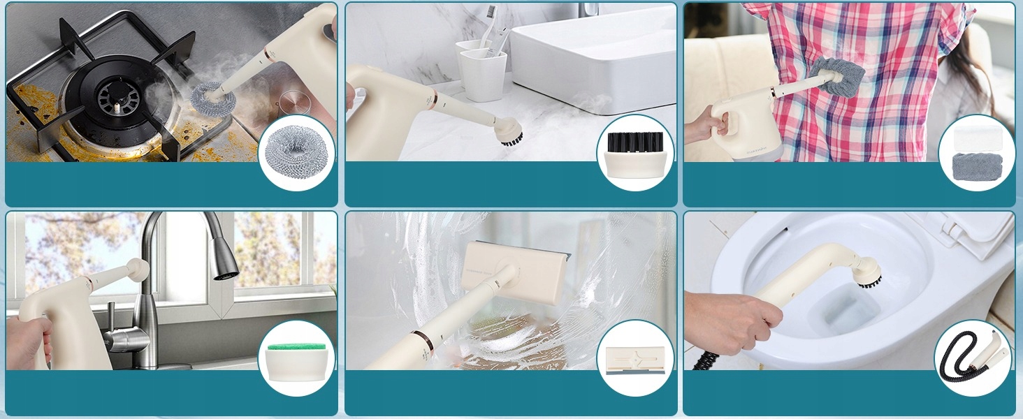 ручной пароход с 1200W генерирует пару с температурой до 110 ° C 🌡, эффективно удаляя жир, грязь, пятна и пыль из кухни, ванной комнаты, окна и интерьер автомобиля 🚗. Рабочее время: 8-12 минут без перерыва!