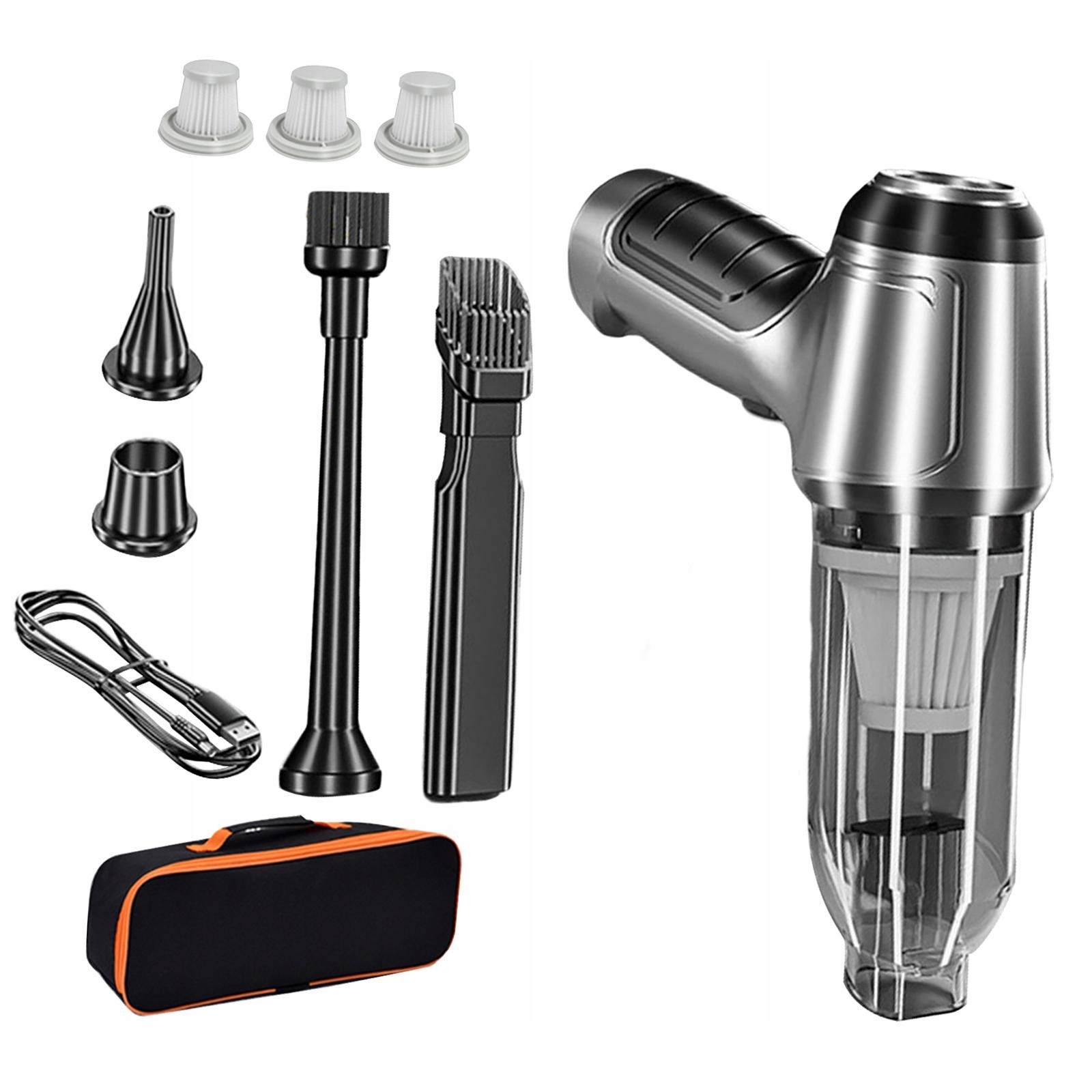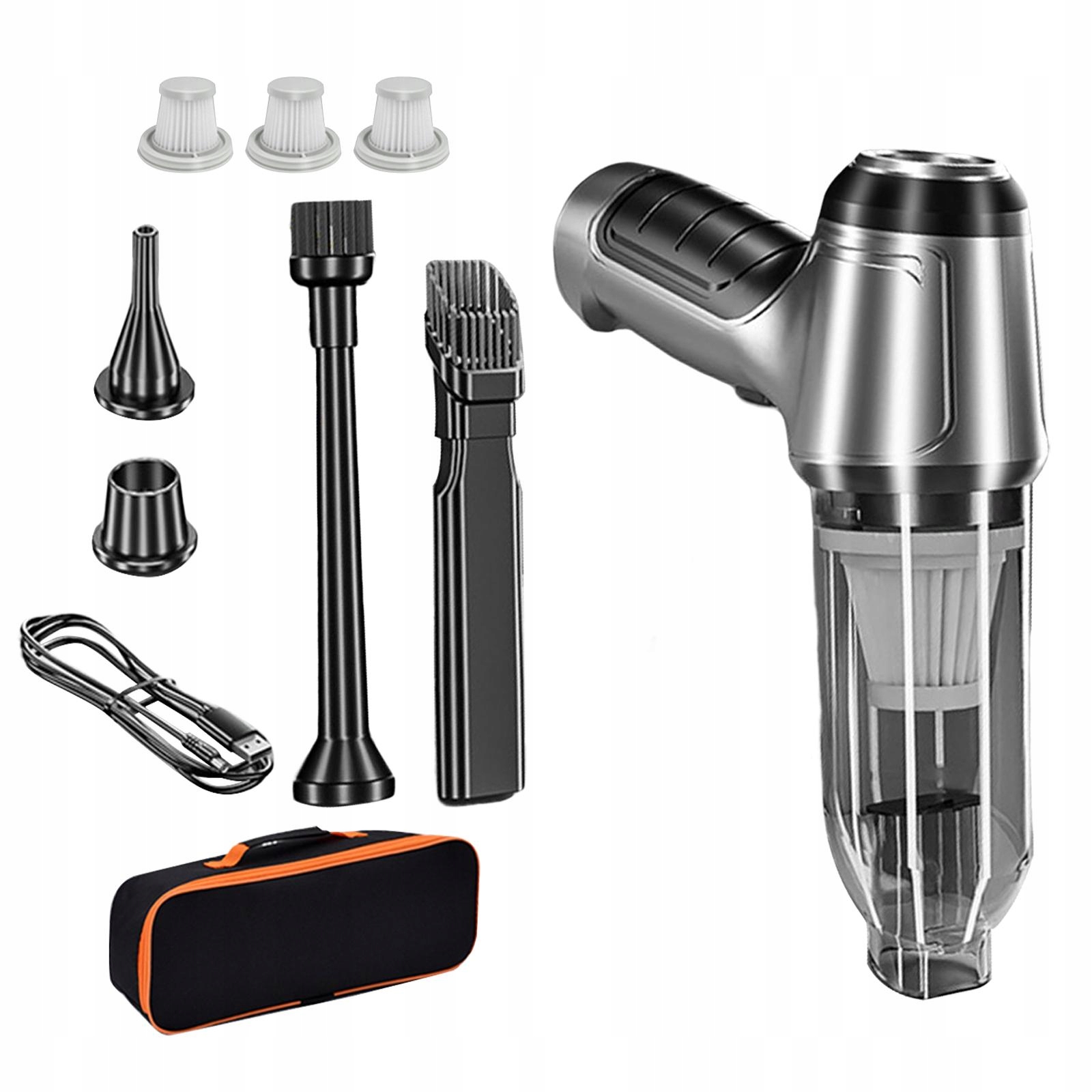 [Портативный]: беспроводной автомобильный пылесос, компактный и легкий, может добраться до любого уголка вашего автомобиля или дома. А благодаря удобной сумке для хранения фильтр можно мыть и использовать повторно.