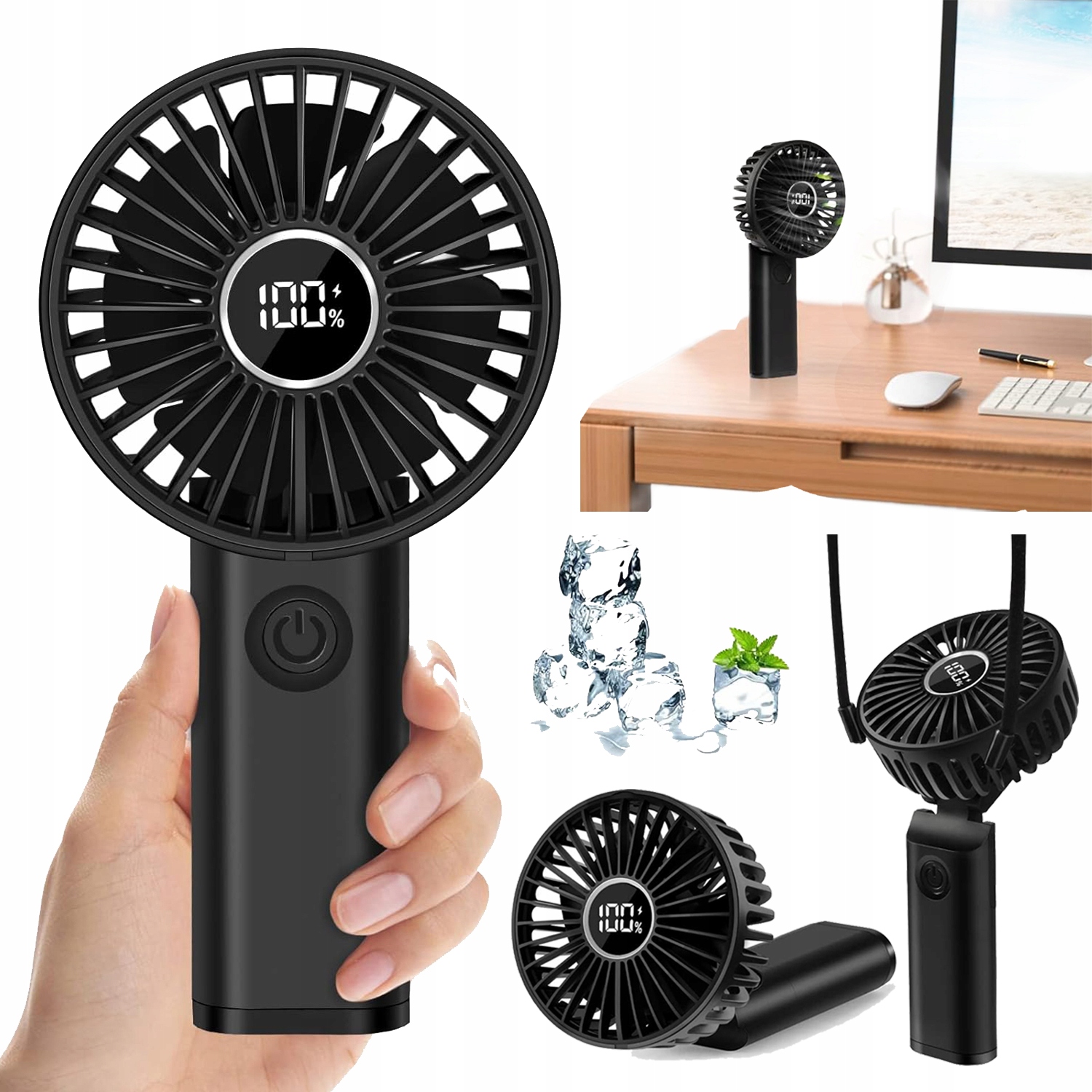 можно использовать в качестве ручного вентилятора (распределенный на 180 °), вентилятор стола (сложенный 90 °) или вентилятор шеи (с прикрепленным поводком). Его легкий дизайн обеспечивает удобство даже в течение длительных периодов использования
